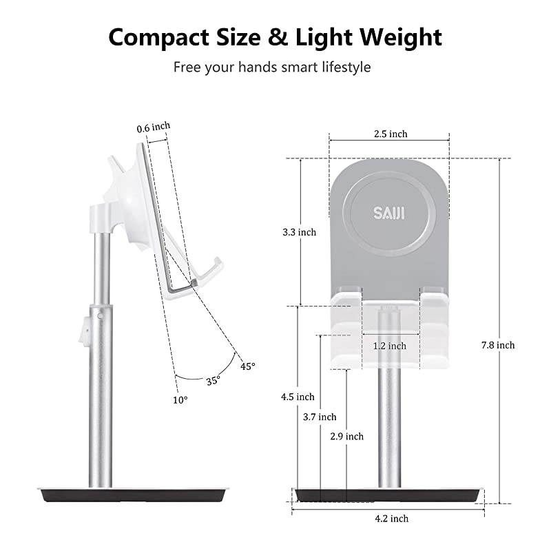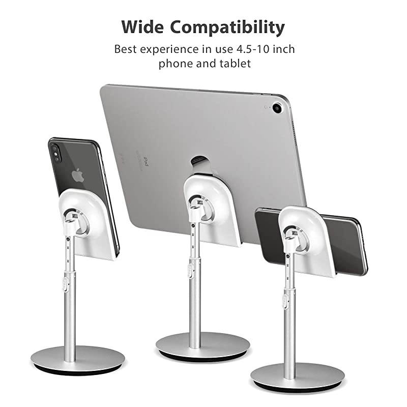 Sturdy Enough: With exquisite aluminum alloy body and metal weighted anti-slip base tablet phone holder can hold your devices more steadily and easily tap the screen without worrying the phone will tip over or fall off.