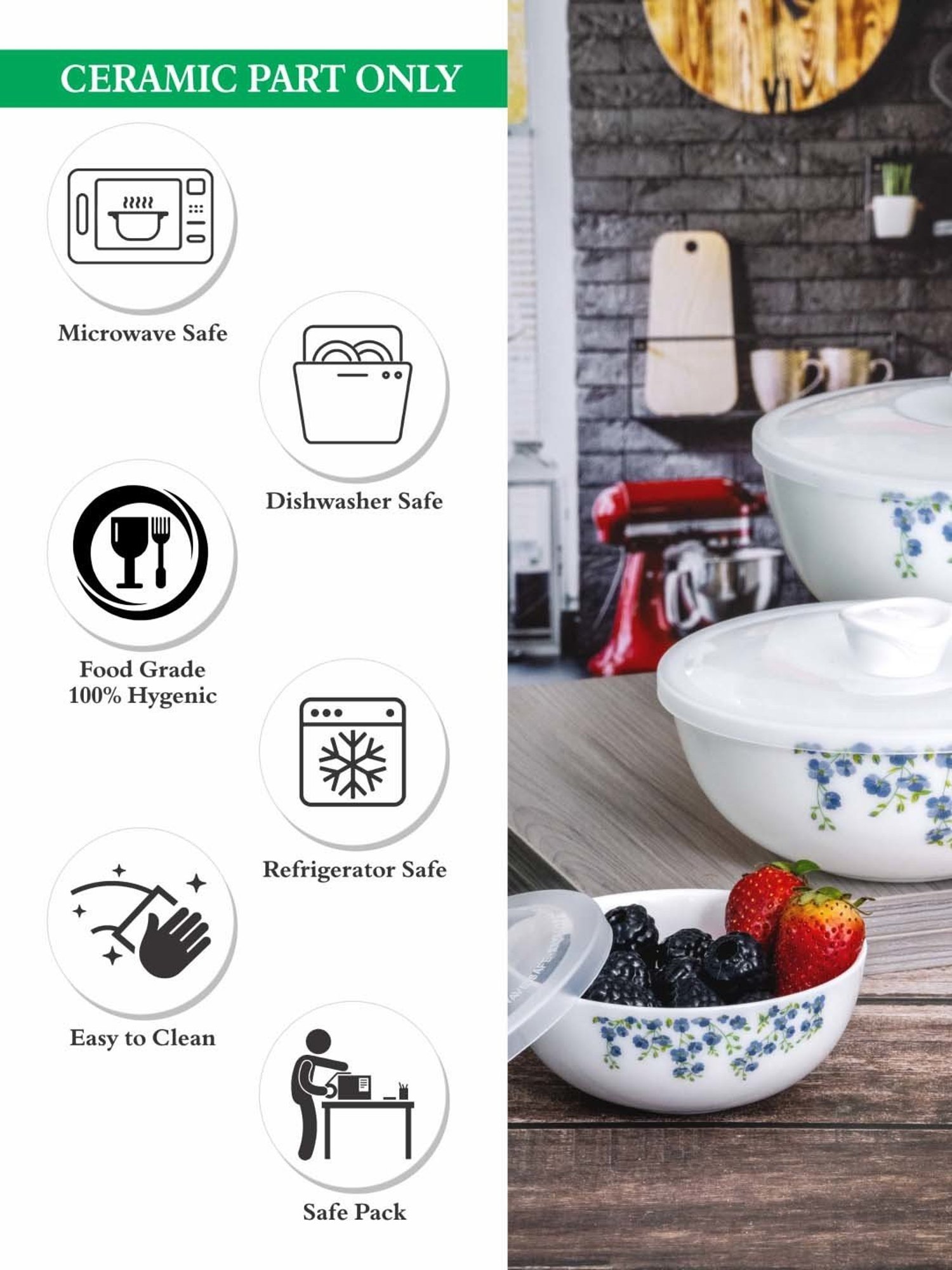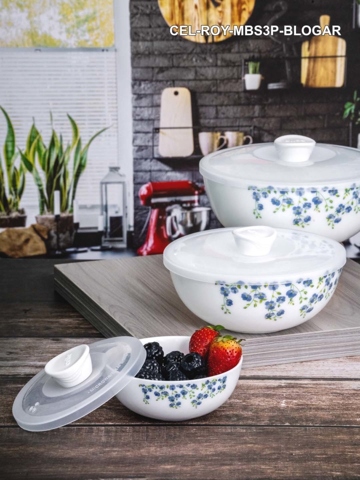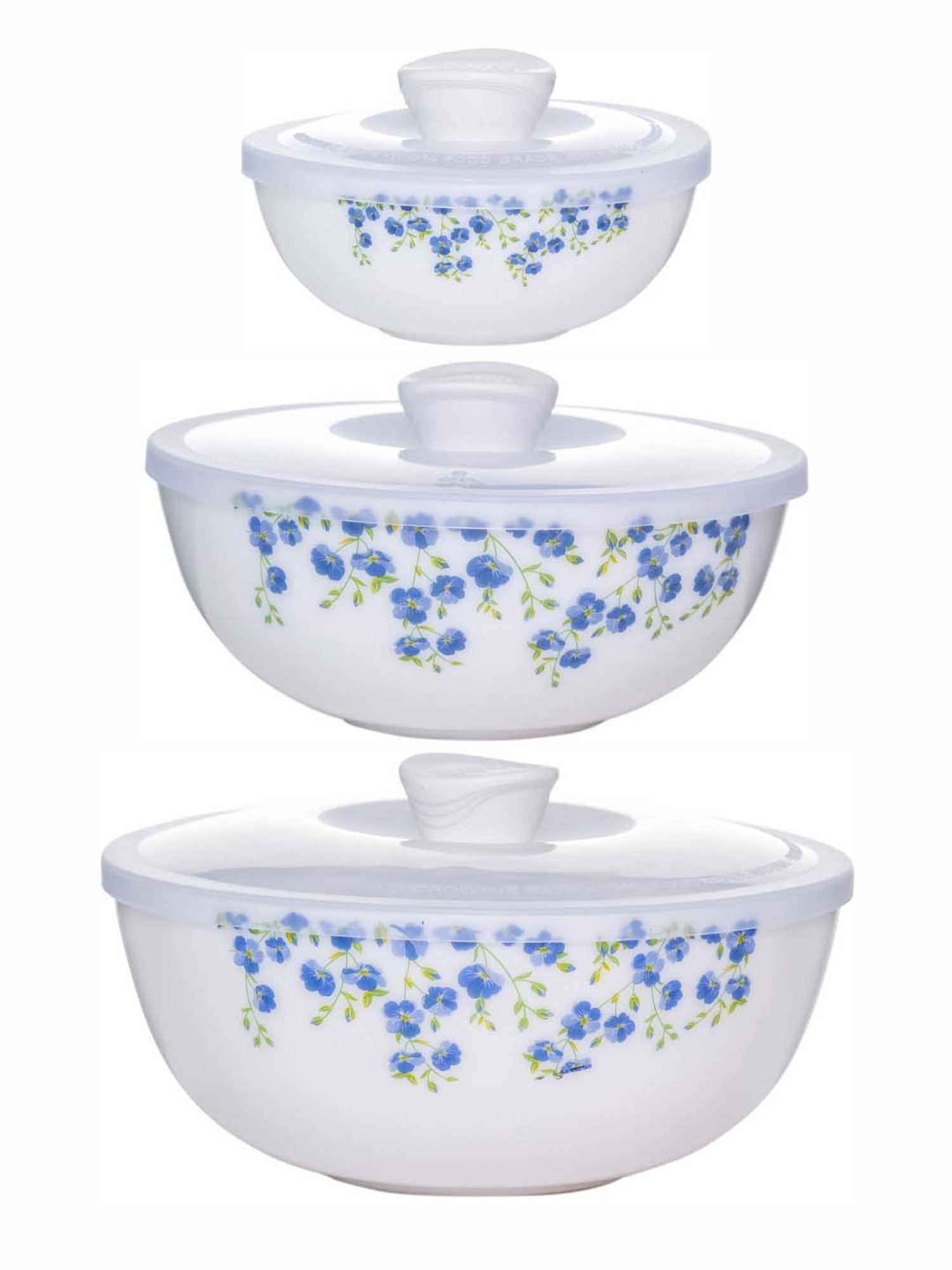 This 3 mixing bowls set with lids from Cello make it easy to refrigerate leftovers, freeze pre-prepared meals or warm them all up again. It is safe for use in the fridge and in the microwave with its plastic lid removed. It comes in handy when you want to take a small portion to a friend's place. It will help keep your kitchen and fridge neatly organized. It is made of opalware. It has a generous capacity of 1500 ml.