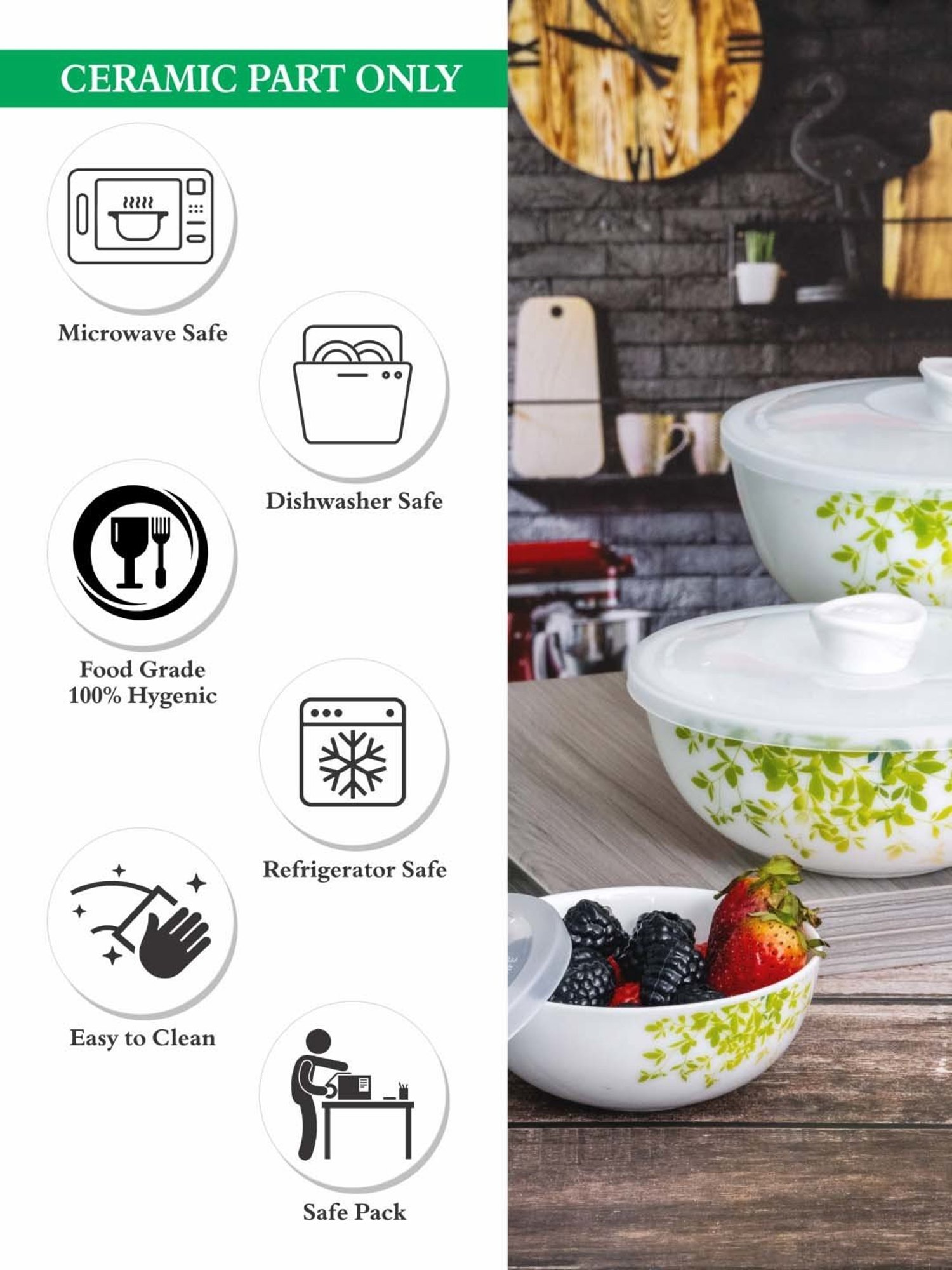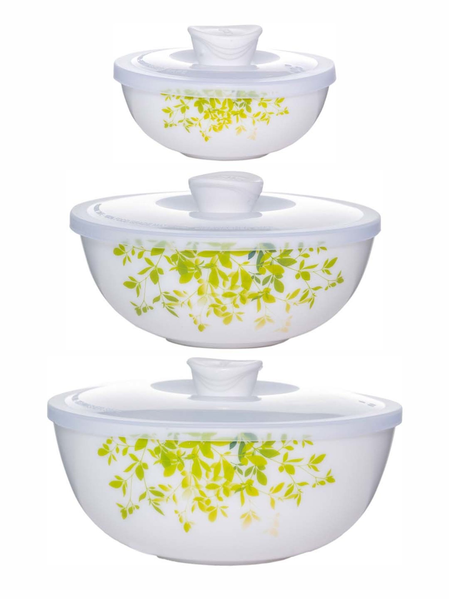 This 3 mixing bowls set with lids from Cello make it easy to refrigerate leftovers, freeze pre-prepared meals or warm them all up again. It is safe for use in the fridge and in the microwave with its plastic lid removed. It comes in handy when you want to take a small portion to a friend's place. It will help keep your kitchen and fridge neatly organized. It is made of opalware. It has a generous capacity of 1500 ml.