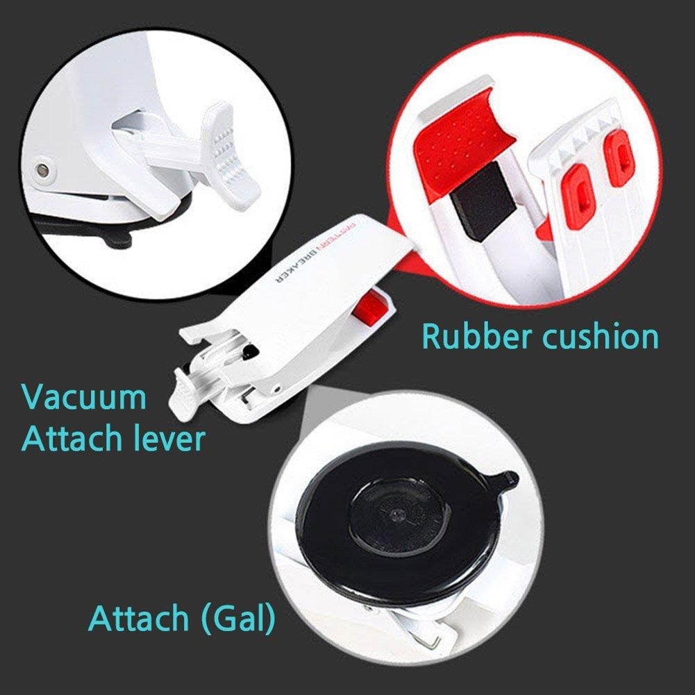 Possible to mount up to 4~8 inches (iPad mini) / can mount or dismount with one hand attached closely to the floor in a shape of tongs and does not block views rotates 360 degrees / adjust angles in two phases Double fixed-adhesive gel, vacuum adsorption system can re-use the absorption gel on the floor (use after cleaning with water)
