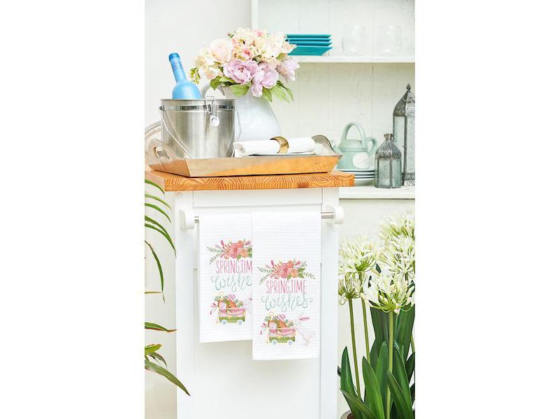 Fresh flowers, crisp breezes, and bounding bunnies; it must be spring! The Spring Time Wishes Kitchen Towel features a pastel embroidered design that is especially beautiful when displayed during your annual egg hunt or Easter dinner.
