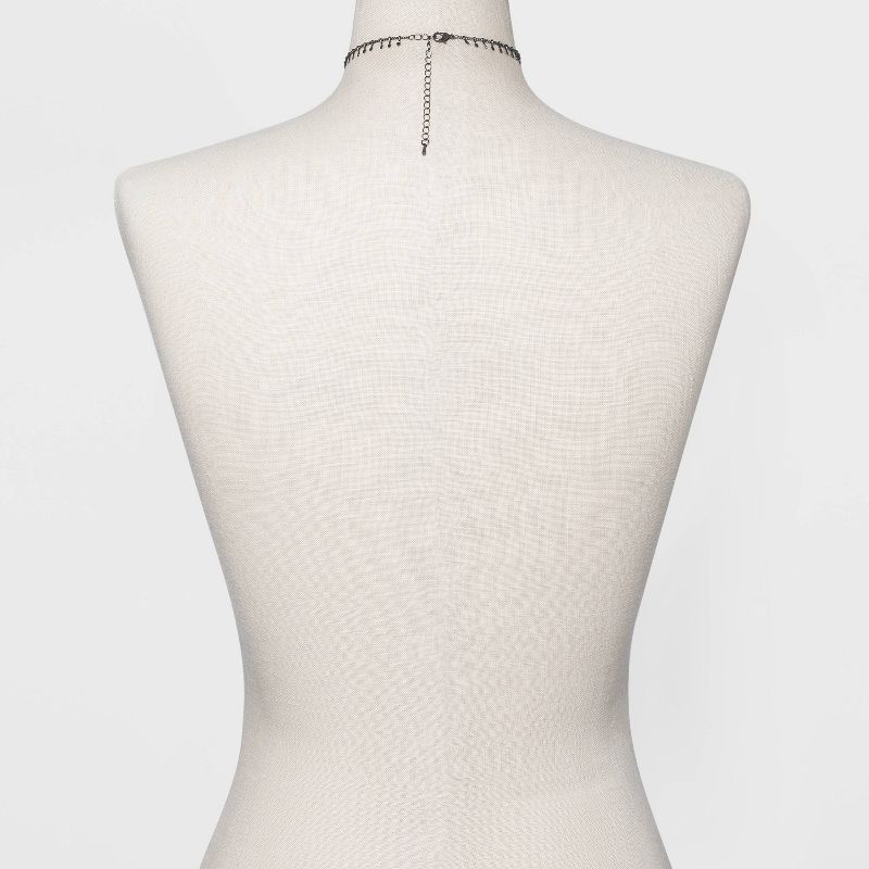Five-piece choker set with varying chain designs. Fashioned in silver and gunmetal tones. Adjustable lobster claw clasp for a secure fit around the neck. If you’re not satisfied with any Target Owned Brand item, return it within one year with a receipt for an exchange or a refund.