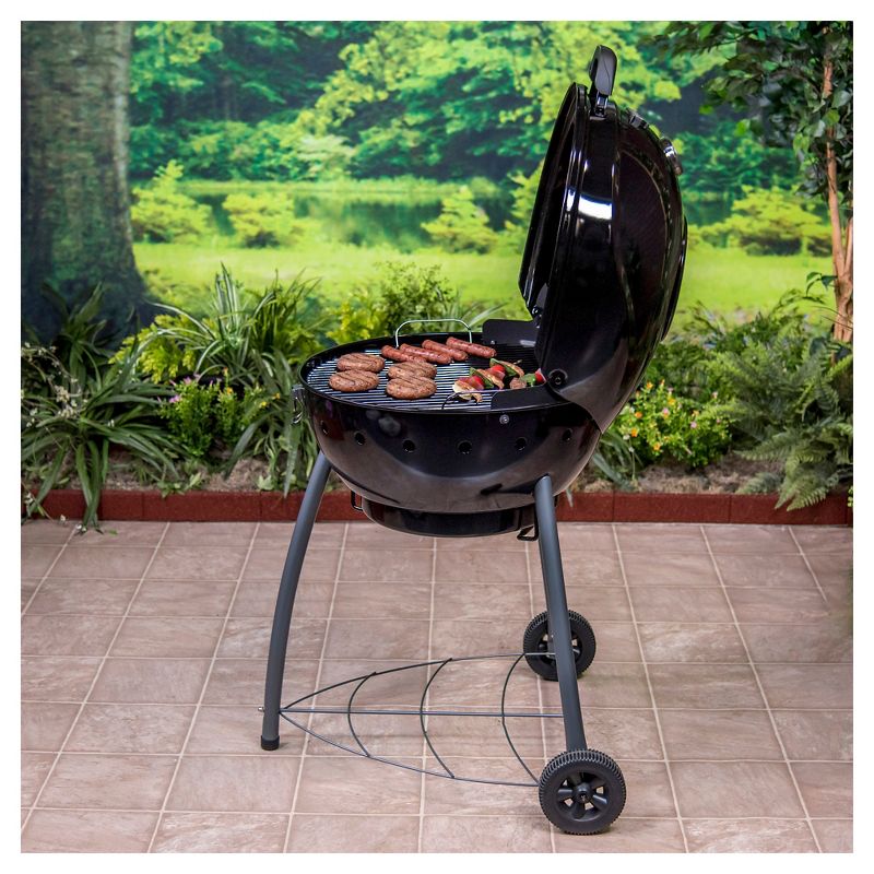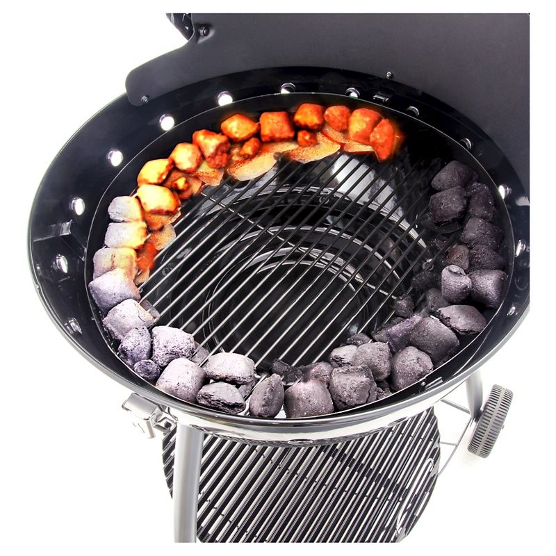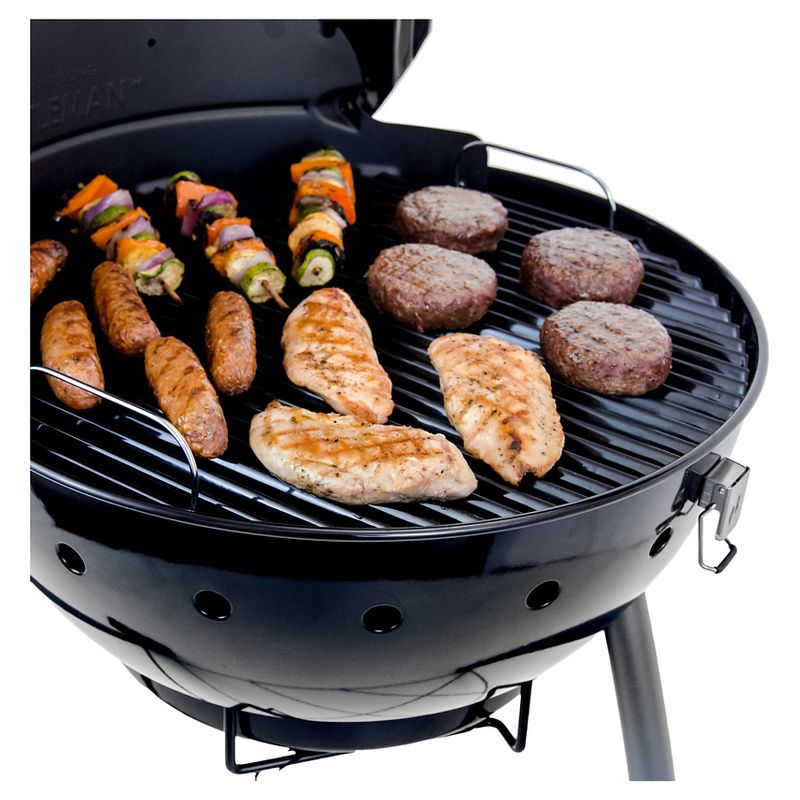 Create deliciously grilled foods every time with the Kettleman TRU-Infrared Charcoal Grill from Char-Broil. This compact grill offers traditional styling and a compact design just right for use at the campsite, in the backyard, or on the deck or patio. You have enough surface area to grill up food for a small to medium group and the built-in temperature gauge helps you to cook at the right level. Great for grilling your favorite meats, vegetables, and fruits for mouthwatering grilled desserts, just wipe it clean with a damp cloth after use.