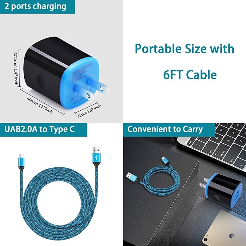 Color: Black Blue USB Wall Charger Brick Block + 2 Pack 6.6FT USB-C Charging Cable Home Travel Phone Charging Block: 1. Compact, portable, lightweight, perfect fit for any palm, backpack or pocket, easy to travel or store. 2.