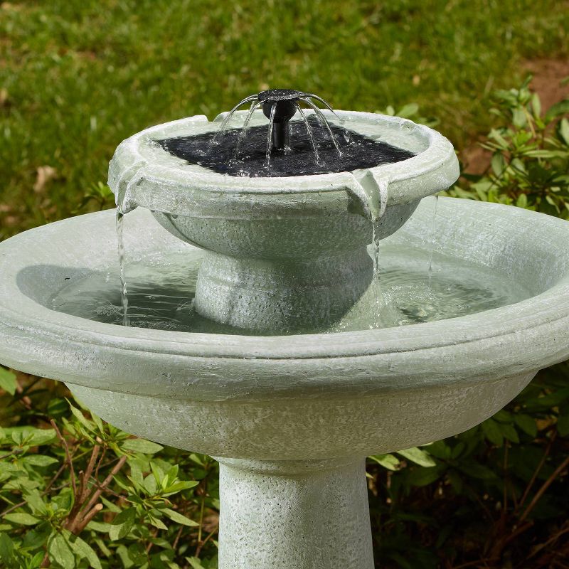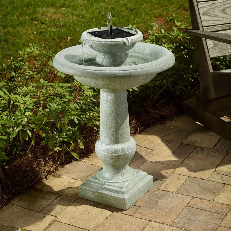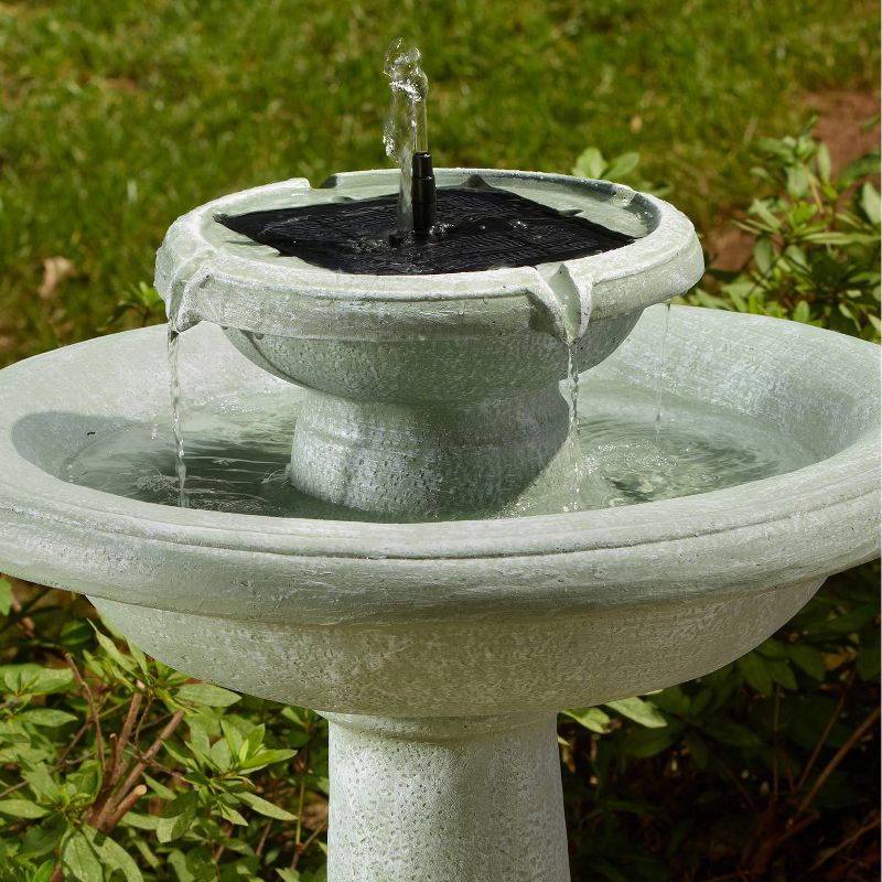 The Chatsworth 2-Tier Solar-On-Demand Fountain is a classic, elegant fountain with a weathered stone finish. This fountain creates soft ambient sounds and is sure to add peace and relaxation to any garden or outdoor area. The Solar on Demand feature allows you to choose when you want your fountain to work. Charge battery in the sun and use the stored energy to power the fountain in cloudy conditions or during the evening. Battery will fully charge in 1 to 2 sunny days and will provide 6 hours of running time. There are no operating costs and no wiring, simply install and enjoy!