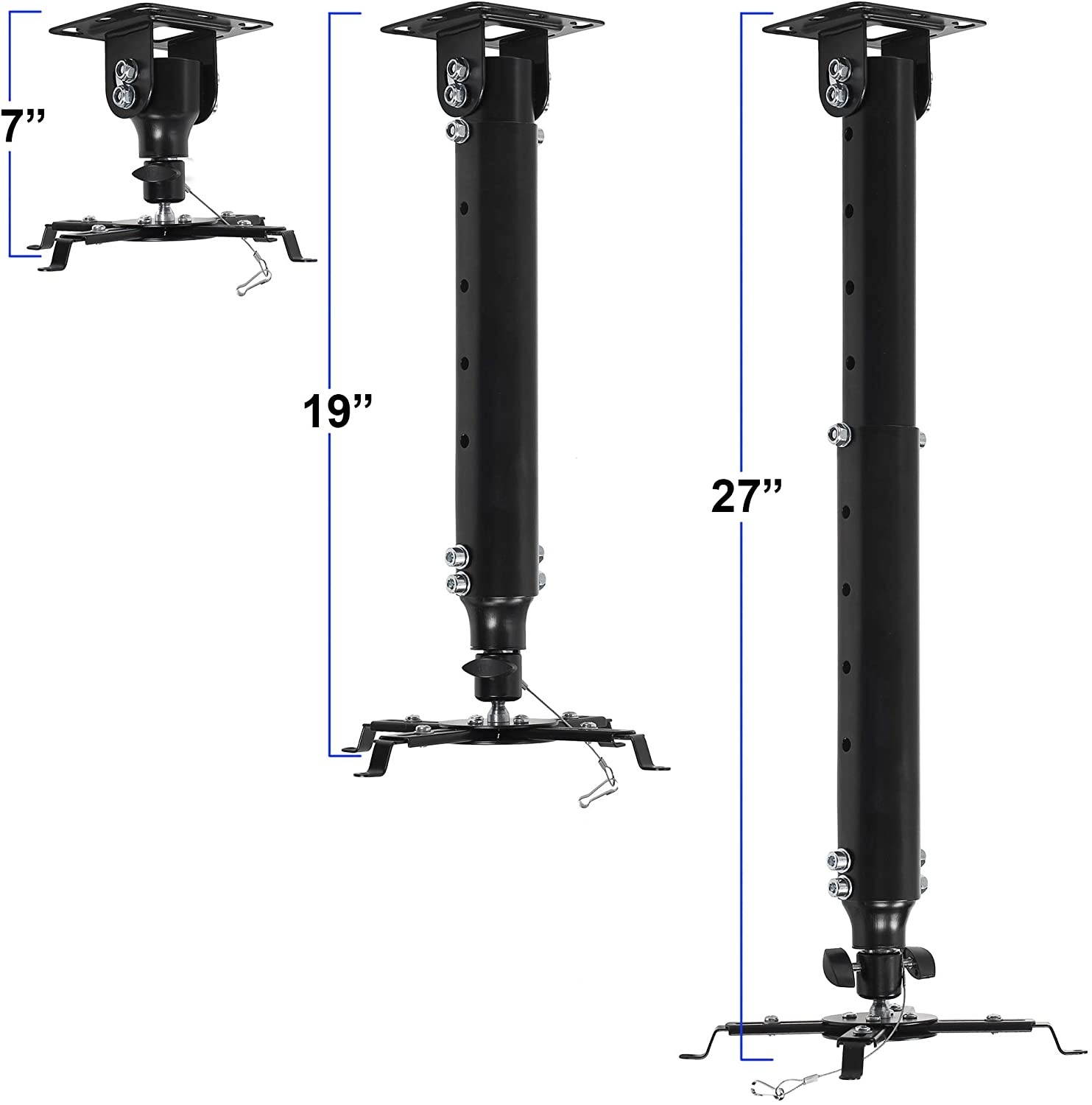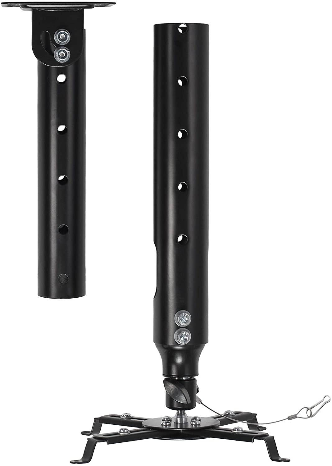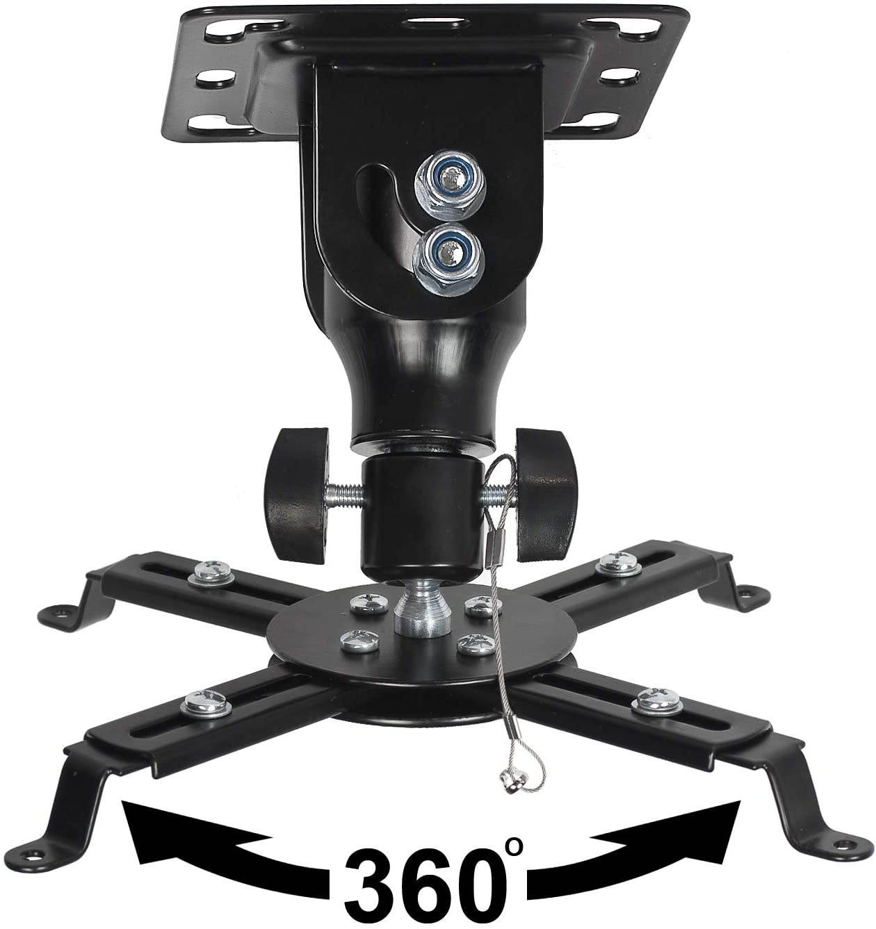 The APMEB Universal Projector Mount is one of a kind. We designed this mount to be 100% universal and compatible with all Projectors on the market. The Four Connection Components can be extended or retracted to attach to the mounting holes on the projector. Additionally, some Projectors have only three mounting holes but with this mount, using all four connection components is not necessary. The mounting plate also features a 0-90 degree turn for recessed installation. Our APMEB supports up to 65LBS and constructed of 100% High-Grade Steel.