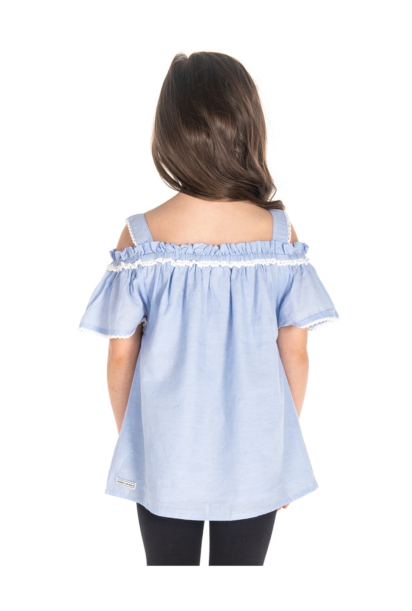Add this chic blue top from Cherry Crumble By Nitt Hyman Kids to your little one's collection to elevate her unique style. Beautifully crafted from cotton fabric with a applique pattern, this square neck with cold shoulder top is attractive and comfortable.