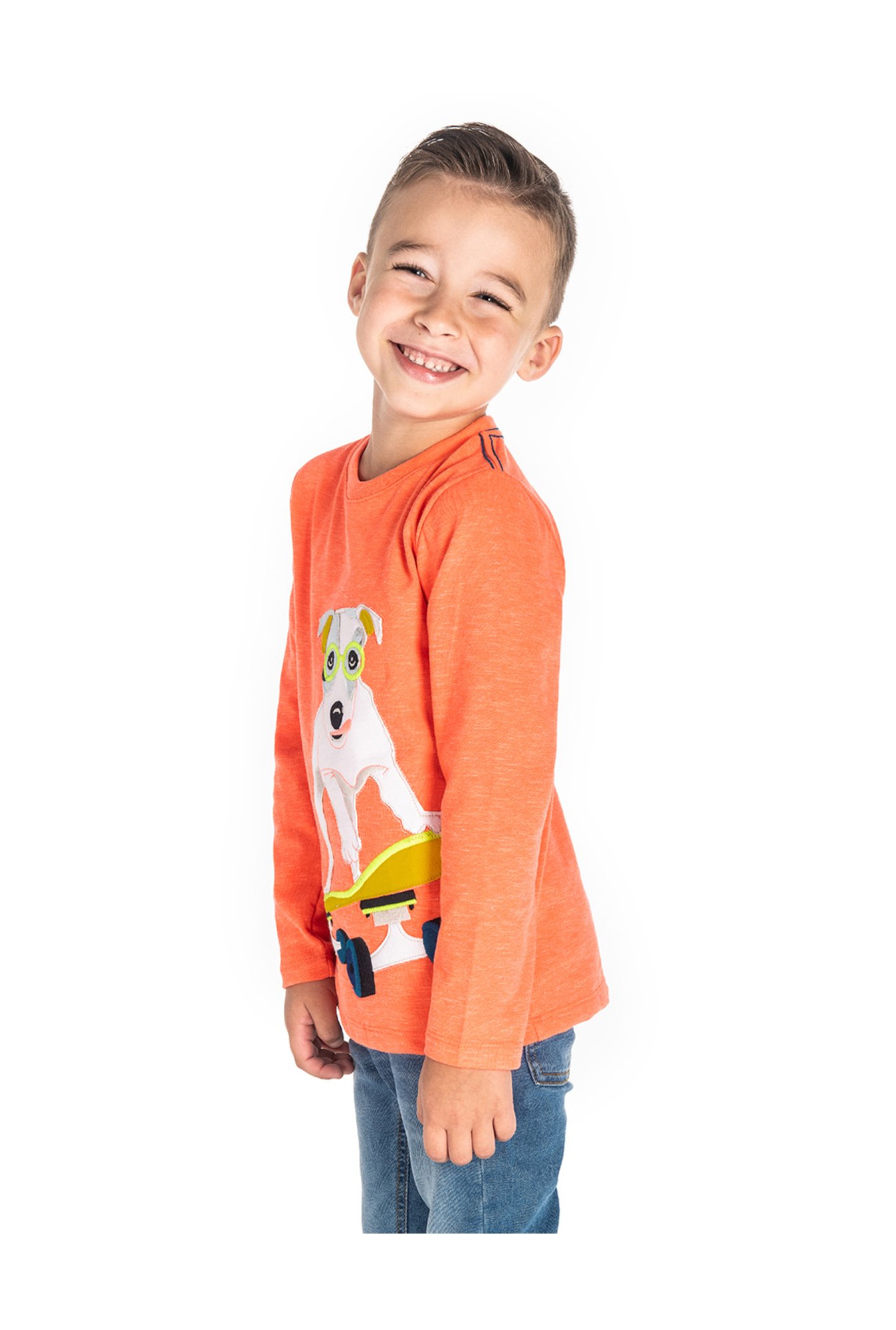 Your little champ is sure to look cool and stylishly dressed in this orange t-shirt from Cherry Crumble By Nitt Hyman Kids. Made from high quality fabric with a round neck and full sleeves, this applique t-shirt is comfortable to wear all day. Team It up with cool pair of jeans.