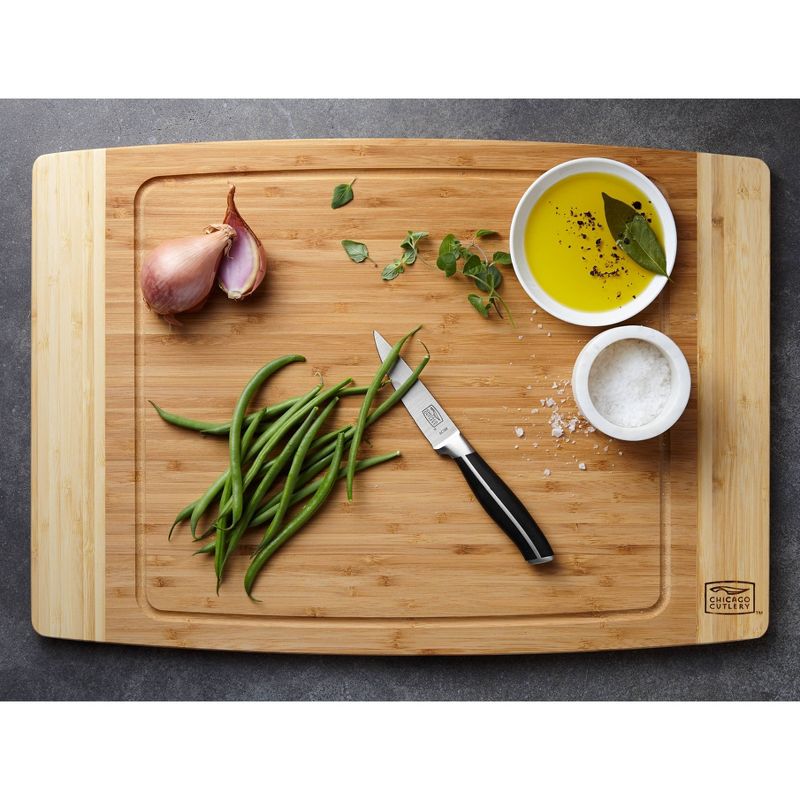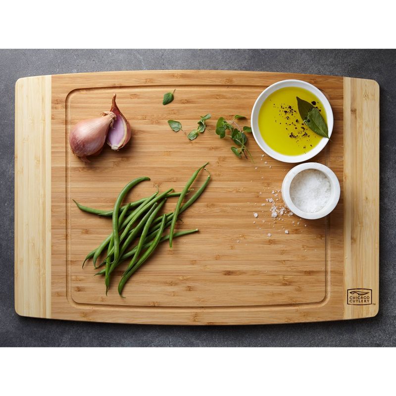 Environmentally-friendly bamboo board is a contemporary choice for bigger jobs. Super-tough, quick-growing bamboo provides a durable, knife-saving space for kitchen chopping tasks and is environmentally friendly, too. Use the grooved side to cut juicy meat, then flip it over to cut veggies or bread or to serve up cheese for a party.