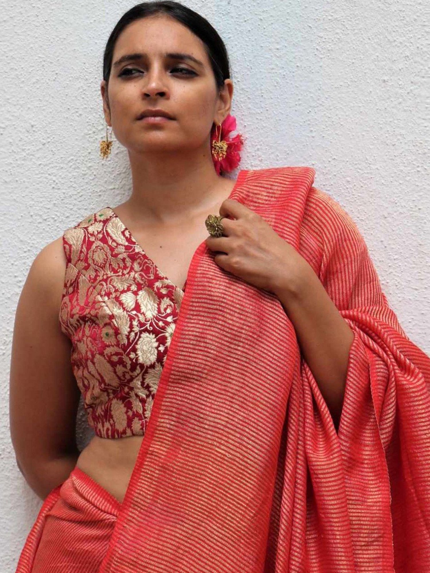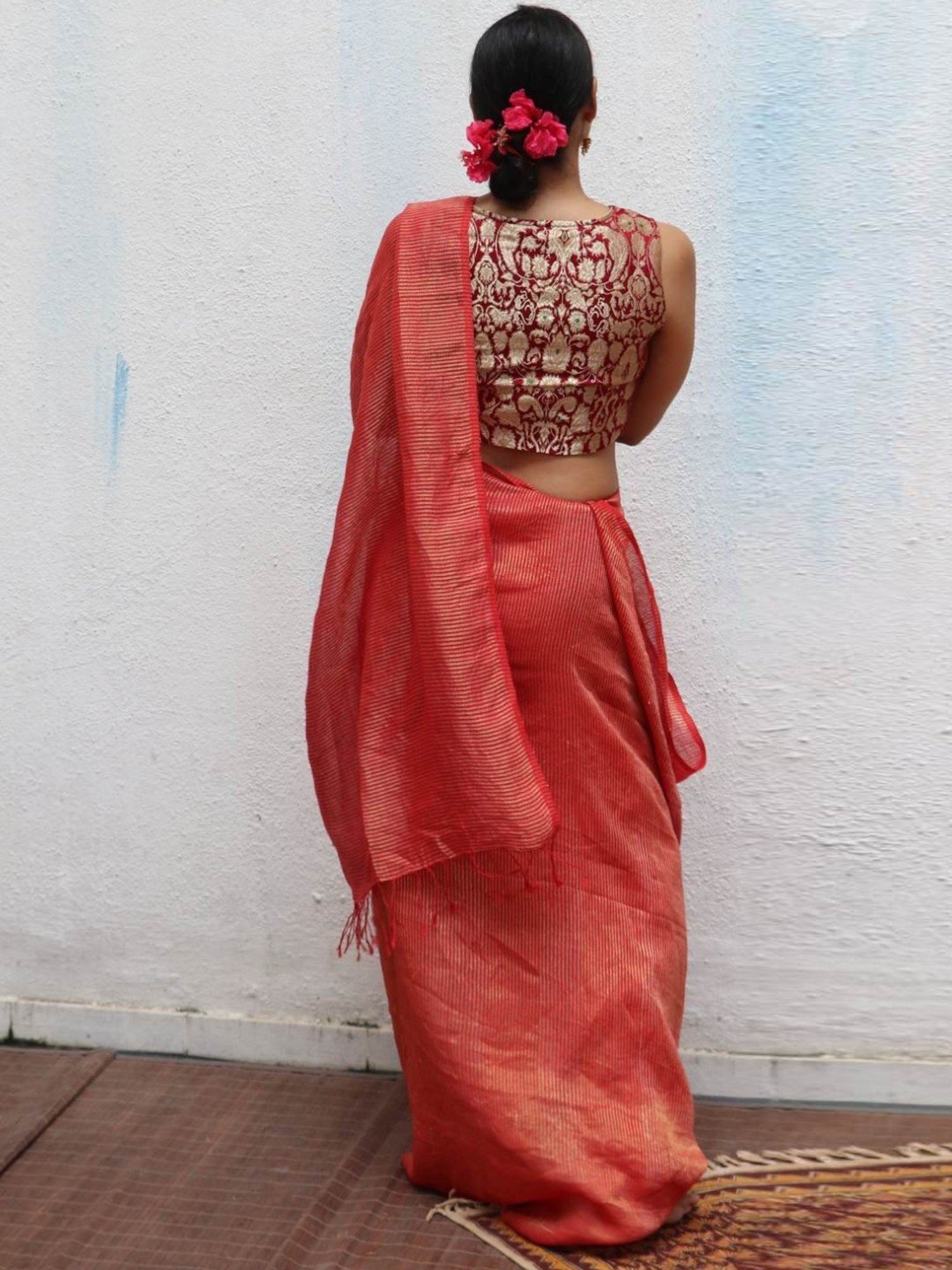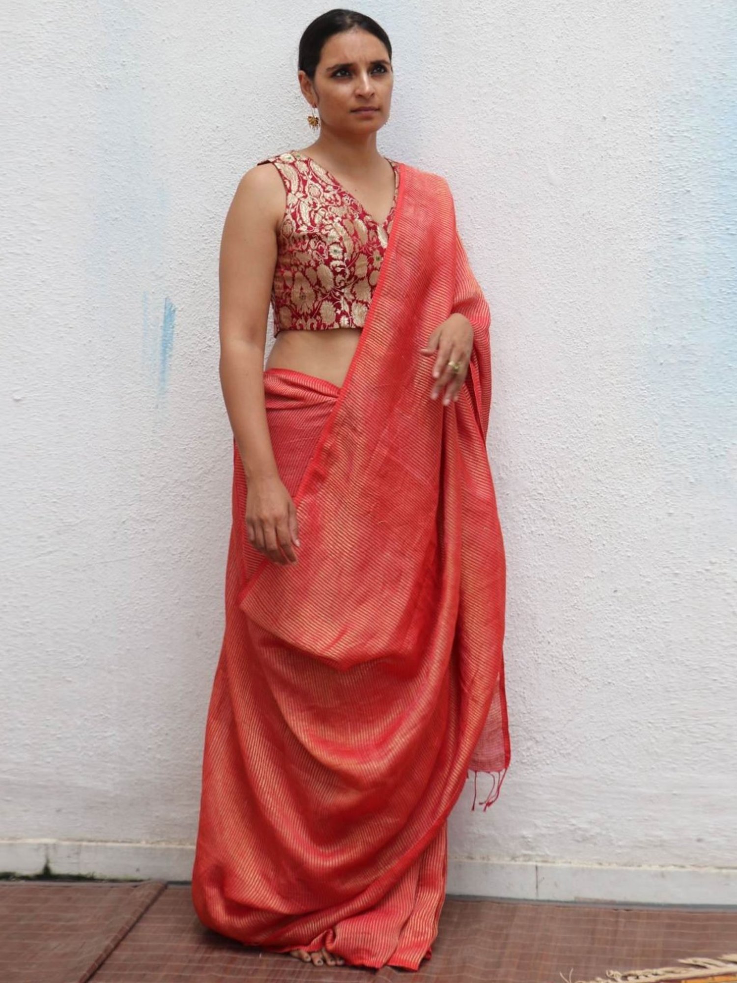 This handwoven linen saree from Chidiyaa unites the heritage of handwoven craftsmanship with modern elegance. It showcases delicate zari work that dances gracefully in the light. It comes with a blouse piece. Disclaimer: All other items in the image are only for display purposes and will not be a part of the delivery content. Product colour may slightly vary due to photographic lighting sources. Country of Origin - India.