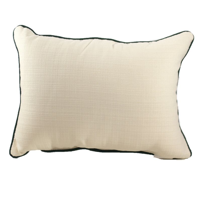 Cream Rectangle Pillow Outlined In Green Piping With "Let Heaven & Nature Sing" Printed In Black On The Bottom Front.. New. Measurements 14 In H X 20 In W X 6 In D. . Made Of Polyester. No Assembly Required. Indoor Use Only. Made In Usa. PRODUCT CARE: Machine Wash On Delicate Cycle (Cold Water), Fluff, And Air Dry Flat.
