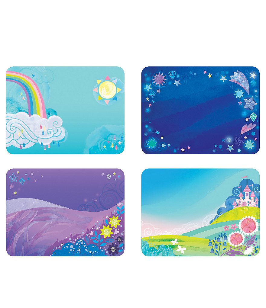 - 4 illustrated background scenes on 2 double-sided cards