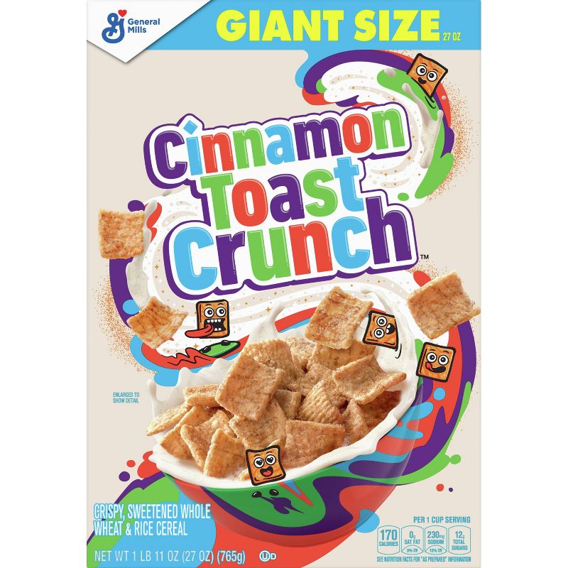•CEREAL: Cinnamon Toast Crunch cereal is a pantry staple for breakfast that's sweet and crunchy, made with real cinnamon.