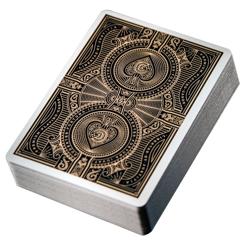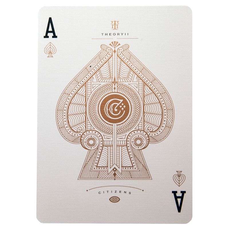 You'll find the most intricate details in Citizen Playing Cards from theory11. Gold foil, hot stamping and bronze foil are combined to create a box design that's eye-catching, elegant and sophisticated, while the inside of the box showcases a breathtaking guilloche pattern. The Joker and back design wear the Latin phrase, "Audentes Fortuna luvat," or "Fortune favors the brave." The Ace of Spades shows the iconic Citizen "C" emblem.