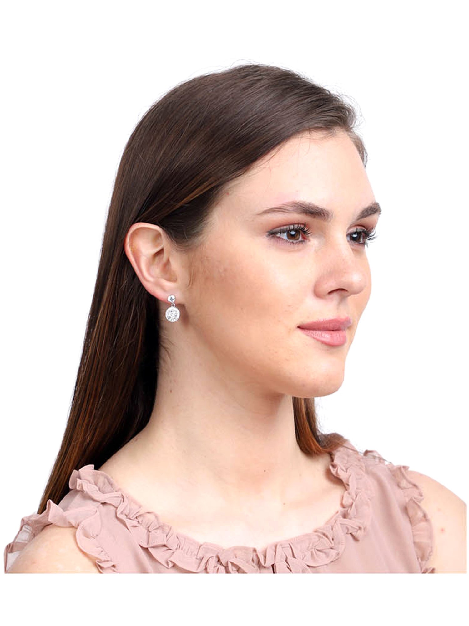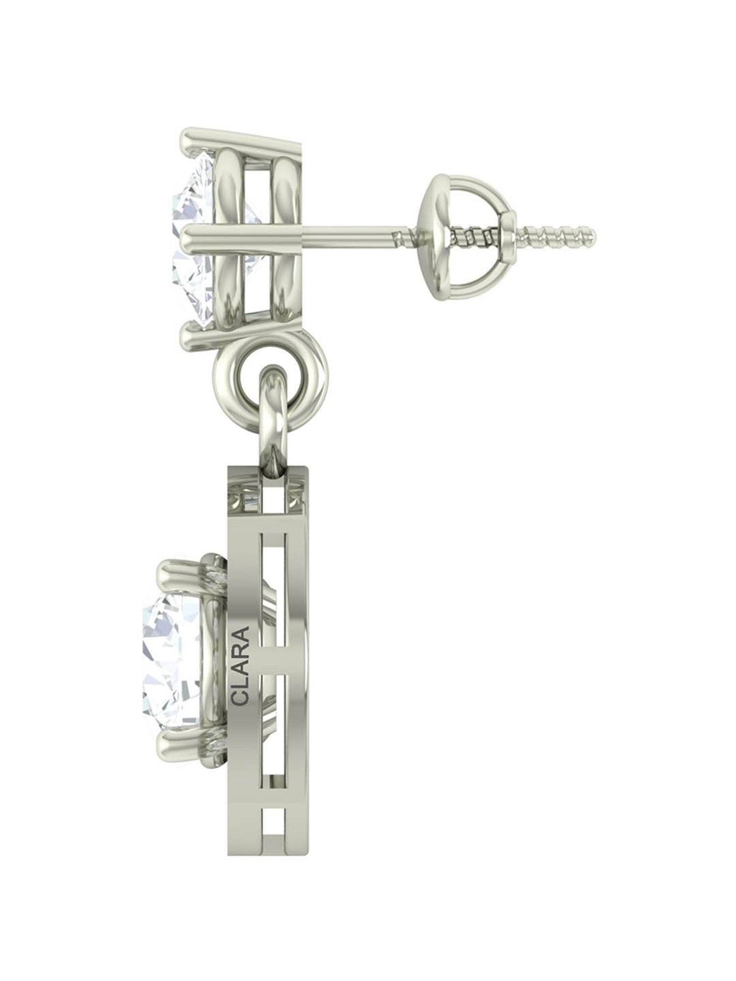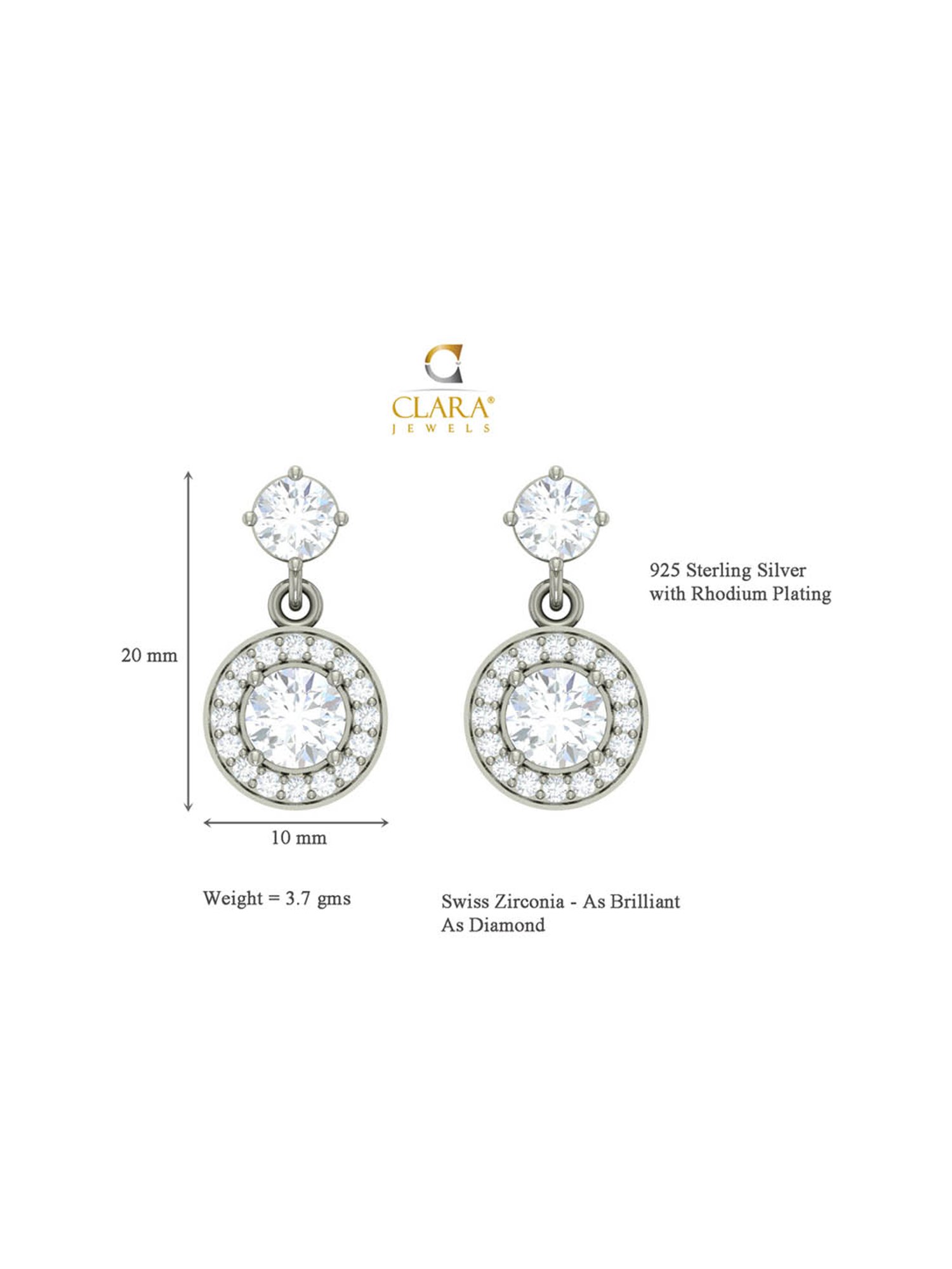 Follow up with the latest trends with this pair of silver rhodium-plated drop earrings from Clara. Made of 925 silver, these drop earrings are sure to uplift your look. The adornment of cubic zirconia stones magnifies its overall grace. The intricate design speaks for its eccentric artistry. Team it with any attire of your choice and stand out in the crowd. It is certified with a BIS hallmark. The product comes in a very elegant gift box with Clara authenticity card.
