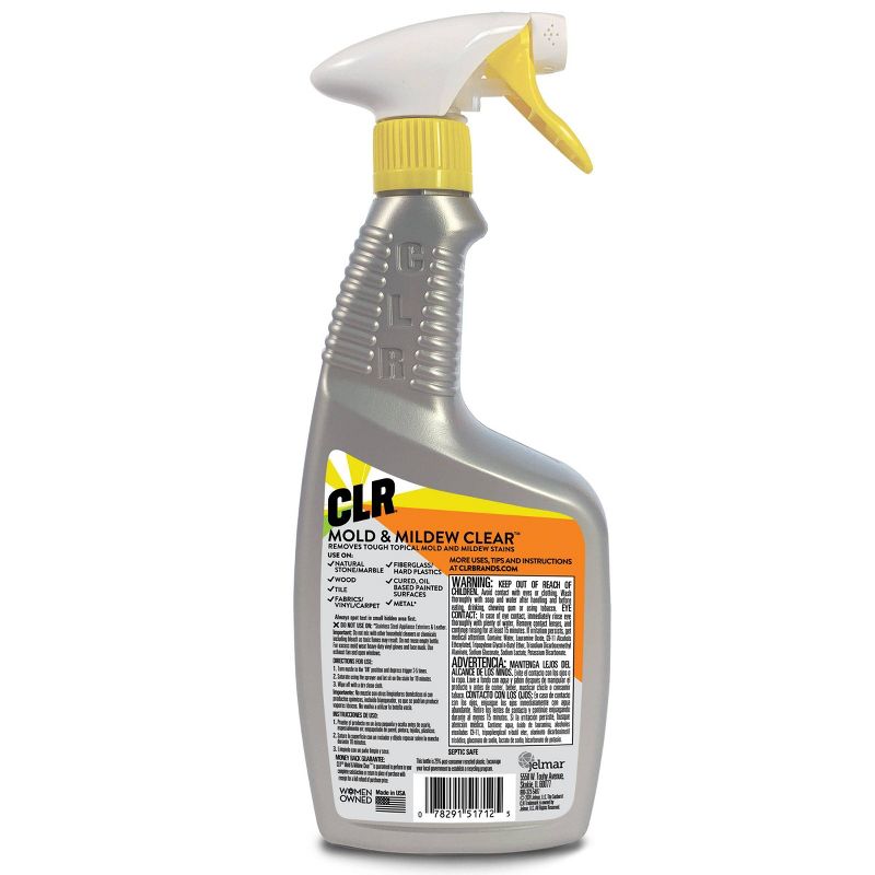 • To remove stains on fabrics: place clean cloth behind stain and spray with CLR Mold and Mildew Stain Remover. Blot top of stain with dry clean cloth until dry. After removing stain, clean as recommended by manufacturer.