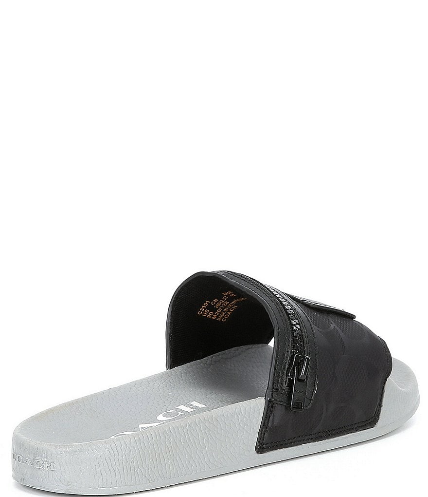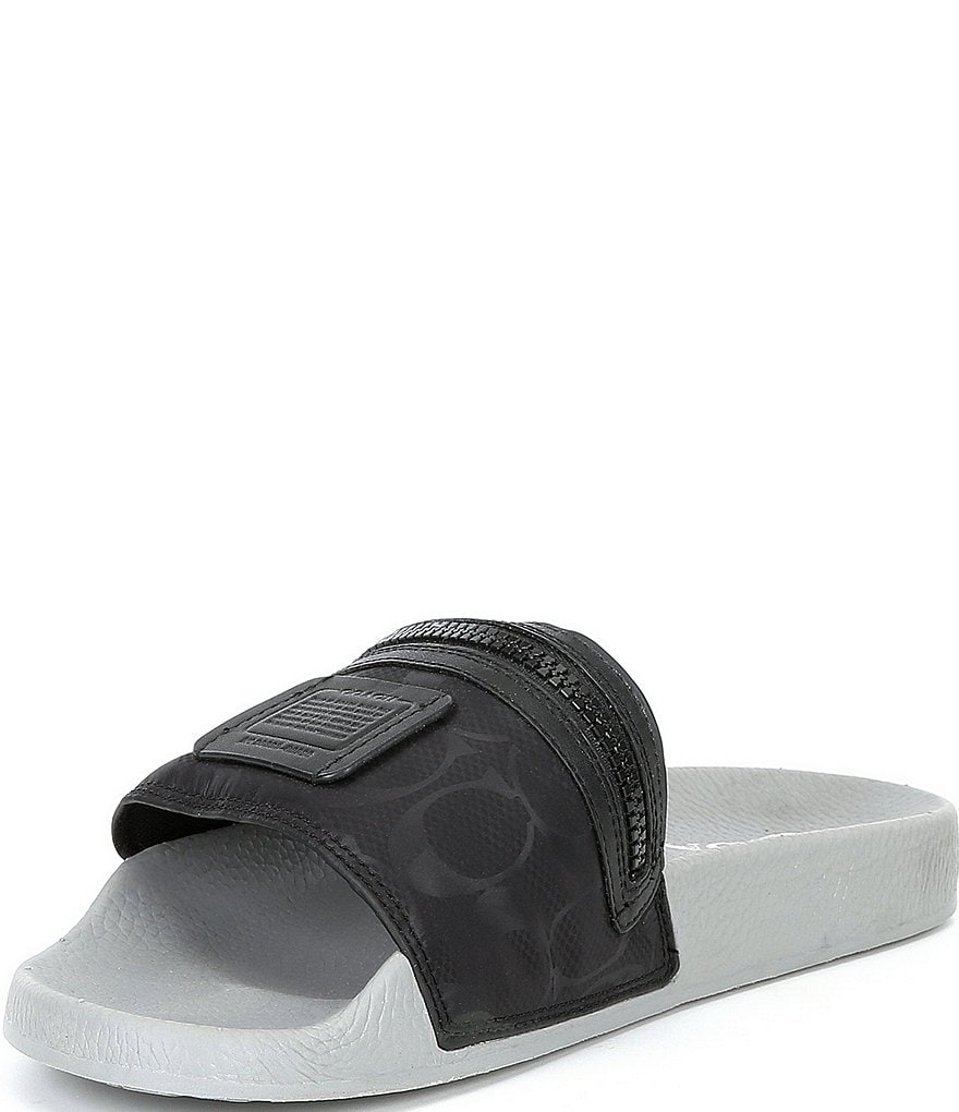 From COACH, the Men's Pocket Pool Slides feature: