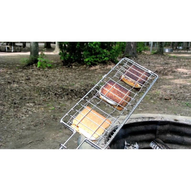Everyone's favorite campfire treat has never been easier to make than with the compact Coghlan's Camper's S'mores Grill! Use over a fire while camping or in the backyard. Each of the 3 individual cooking spaces holds all of the fixings for a perfect s'more. The unit features a sliding lock ring to keep the grill closed while cooking. Made of durable chrome plated steel. Makes 3 s'mores at one time. Handle length: 17". Overall length: 29". Depth: 1.2".