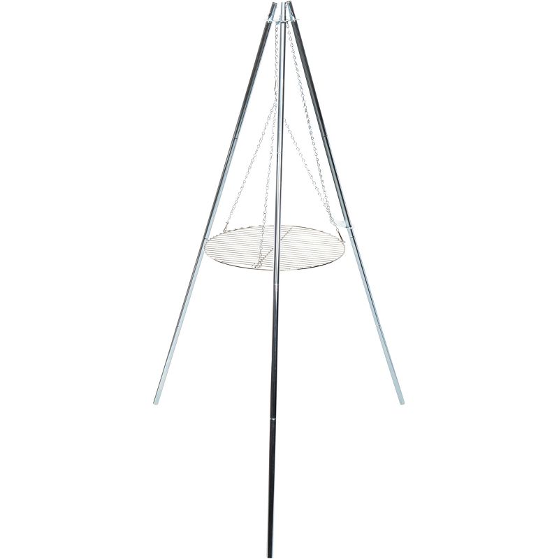 Ideal for cookouts Coghlan's Tri-Pod Grill and Lantern Holder can be placed and used anywhere. Its stable, height adjustable nickel-plated grill surface is supported by a 4-piece galvanized steel tri-pod. The legs separate and collapse for easy storage. For use with cookware only. 17" diameter chrome grill. Quick and easy set up. Adjustable height of grill surface.