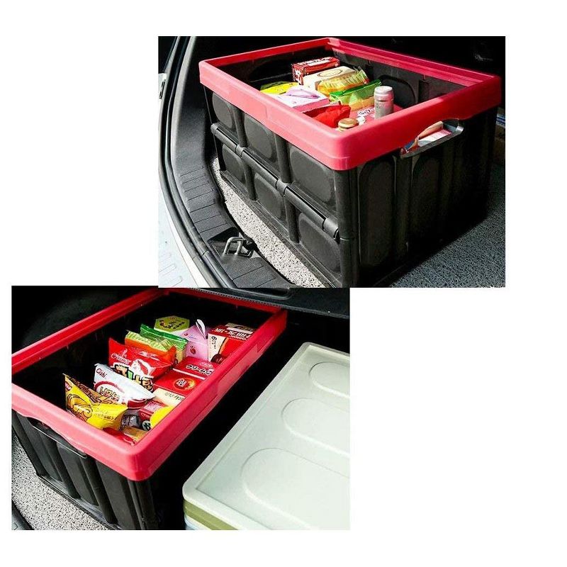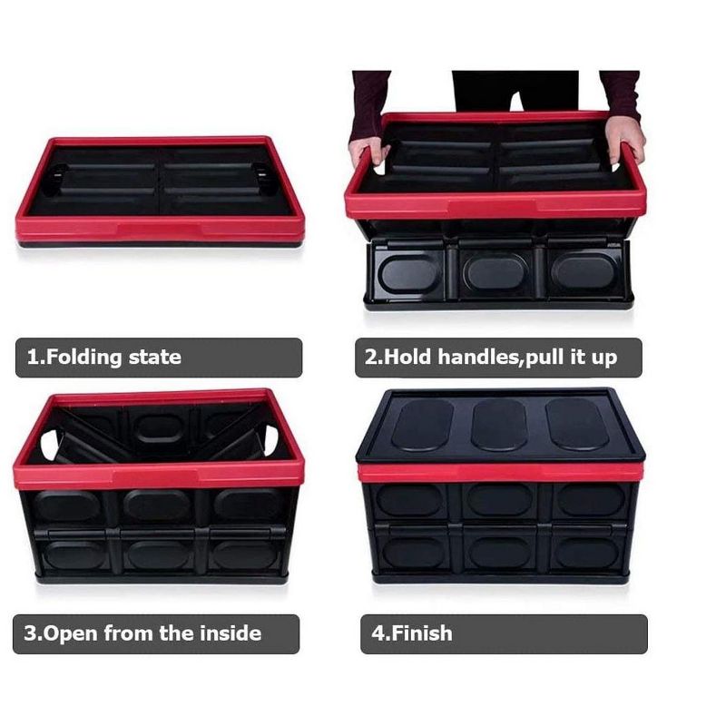 Capacity: The storage box can hold up to 30 liters, Size 16.7in x 11.4in x 9.4in helps you to organize your trunk and home to get rid of messes. Collapsible and space-saving: Easy to fold down and open, only 2.76inch height after folding. No longer take up space, when you don't want to use it. Durable material: Stability of structural design, made of durable plastic, it is hard and tough enough to withstand any wear and tear during use. Multiple uses: Fit for car travel, fishing, shopping, and moving house, camping or other outdoor activity, can be applied to storage clothing, books, toys, foods and so on.