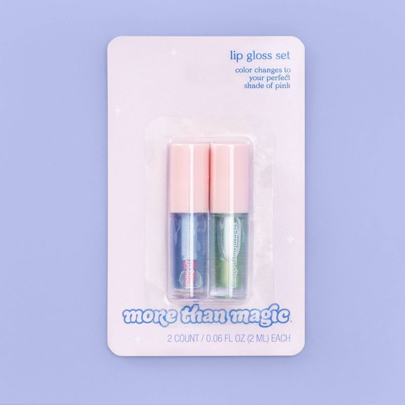 Your girl will love using these Color-Changing Lip Glosses from More Than Magicâ„¢ to find just the right color to suit her mood. This set of two lip glosses features fun and unique color-changing formulas that adjust to the perfect shade of pink once applied. Whether she keeps them tucked into her cosmetic bag at home or into her favorite purse as she heads out for the day, this color-changing lip gloss set is a fun and whimsical pick for her beauty routine.