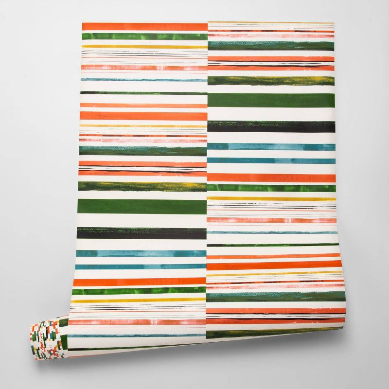 Whether you're decorating your kitchen nook or your bathroom, bring a touch of classic color to your space with the Colored Stripes Wallpaper from Opalhouse™. This multicolor printed wallpaper is decorated with two columns of asymmetrical horizontal stripes in green, blue, orange, yellow and more — the stripes come in varying sizes and feature distressed detailing, lending a timeless vibe you're sure to love. It's made from self-adhesive vinyl, making it easy for you to apply, and the repositionable design provides easy customization so you can accommodate decor changes. Plus, this wallpaper covers 27.5 square feet, giving you plenty of material for an appealing decor update.