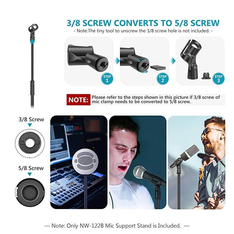 AND CONCERT USE: Perfect mic holder positioning and optimal pickup for stage, studio, concert, etc*****COMPATIBILITY: The mic holder fits for most types of microphones
