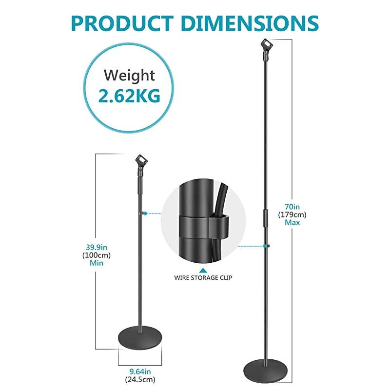 ADJUSTABLE: With standard 5/8 x 27 external thread, it's easy for you to install and adjust the height of the stand from 39.9 to 70 inches/100 to 179 centimeters;