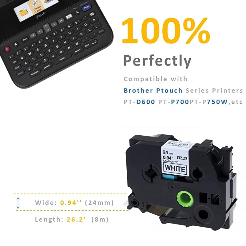 COMPATIBLE WITH P-Touch LABEL MAKER: PTD600 PTD800W PTE500 PTE550W PTE800W PTH500LI PTP700 PTP750W PTP900W PTP950W PT330 PT350 PT520 PT530 PT540 PT550 PT580C PT1400 PT1500PC PT1600 PT1650 PT2200 PT2210 PT2300 PT2310 PT2400 PT2410 PT2430PC PT2500PC PT2600 PT2610 PT2700 PT2710 PT2730 PT2730VP PT3600 PT7500 PT7600 PT9200DX PT9200PC PT9400 PT9500PC PT9600 PT9700PC PT9800PCN, etc.