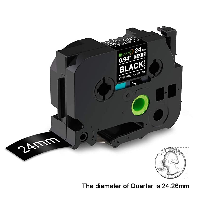 *****Length: 8m ( 26.2 ft), width: 24mm (1"), color: white on black replacement for Brother TZe-355 label tape, 2-pack*****Easily applied. equivalent to Ptouch tze 24mm label tapes adhesive backing has a slit in the middle, remove starting from the middle is more easy. *****Compatible with