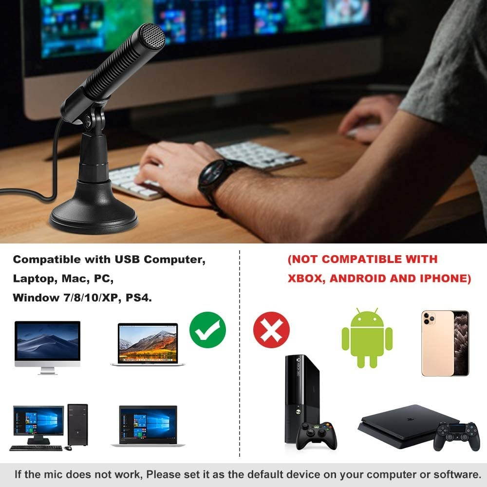 Good Compatibility and recording quality Microphone for computer is compatible with 3.5 mm and USB computer, Laptop, Mac, PC, window 7/8/10/XP, PS4. (NOT COMPATIBLE WITH XBOX, ANDROID AND IPHONE);