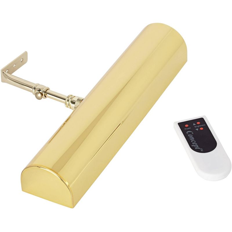 Using new LED light technology, this cordless, remote controlled picture light offers superior lighting to illuminate paintings, photos and other artwork. It features warm white LEDs that provide bright, even light. Safe for artwork, the LEDs produce no heat and no harmful UV rays. The polished brass finish light includes a remote control that allows you to control and dim the light. Battery powered and cordless, the light will run for over 100 hours per battery set. For pictures up to 3-feet wide. Easy drop-in style battery replacement. Can use same controller for multiple lights.
