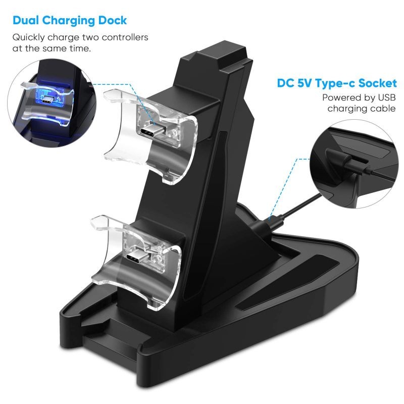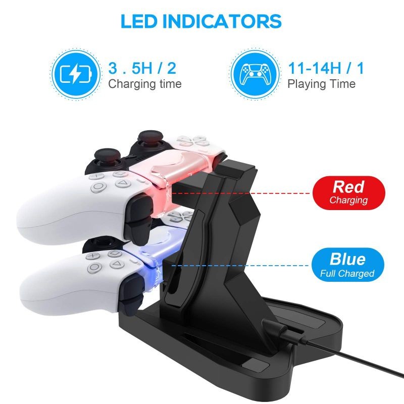 ??Fast Charge and Reliable - With 2 built-in micro USB adapter ports, allows you to securely store and charge up 2 PS5 controllers simultaneously. Both DualSense controllers charged simultaneously in under 4 hours