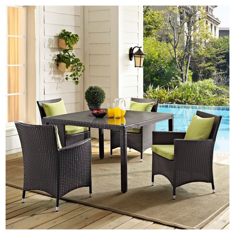 Bring some stylish comfort to your outdoor space, and get ready for morning coffees and dinner parties alike, with the Convene Square Outdoor Patio Glass-Top Dining Table from Modway. This UV- and water-resistant outdoor dining table has a classic woven design that can easily be paired with any style of dining chairs.