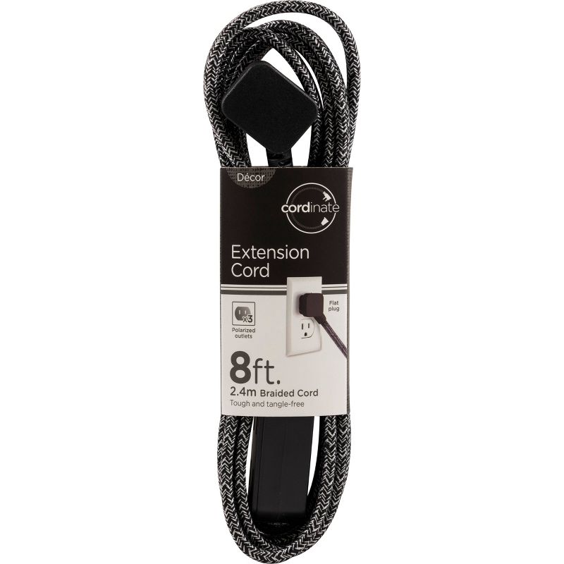 The black and gray, woven fabric cord cover not only adds an unexpected element of design to your home or office, but also increases the cable’s durability while preventing bends and tangles. Additionally, the flat plug makes it easy to plug in where space is limited. To prevent accidental shocks, the extension cord includes slide-to-close safety covers on each outlet. For a premium design that offers equal parts fashion and function, choose the Cordinate 3 Outlet Polarized Extension Cord. Model #42841
