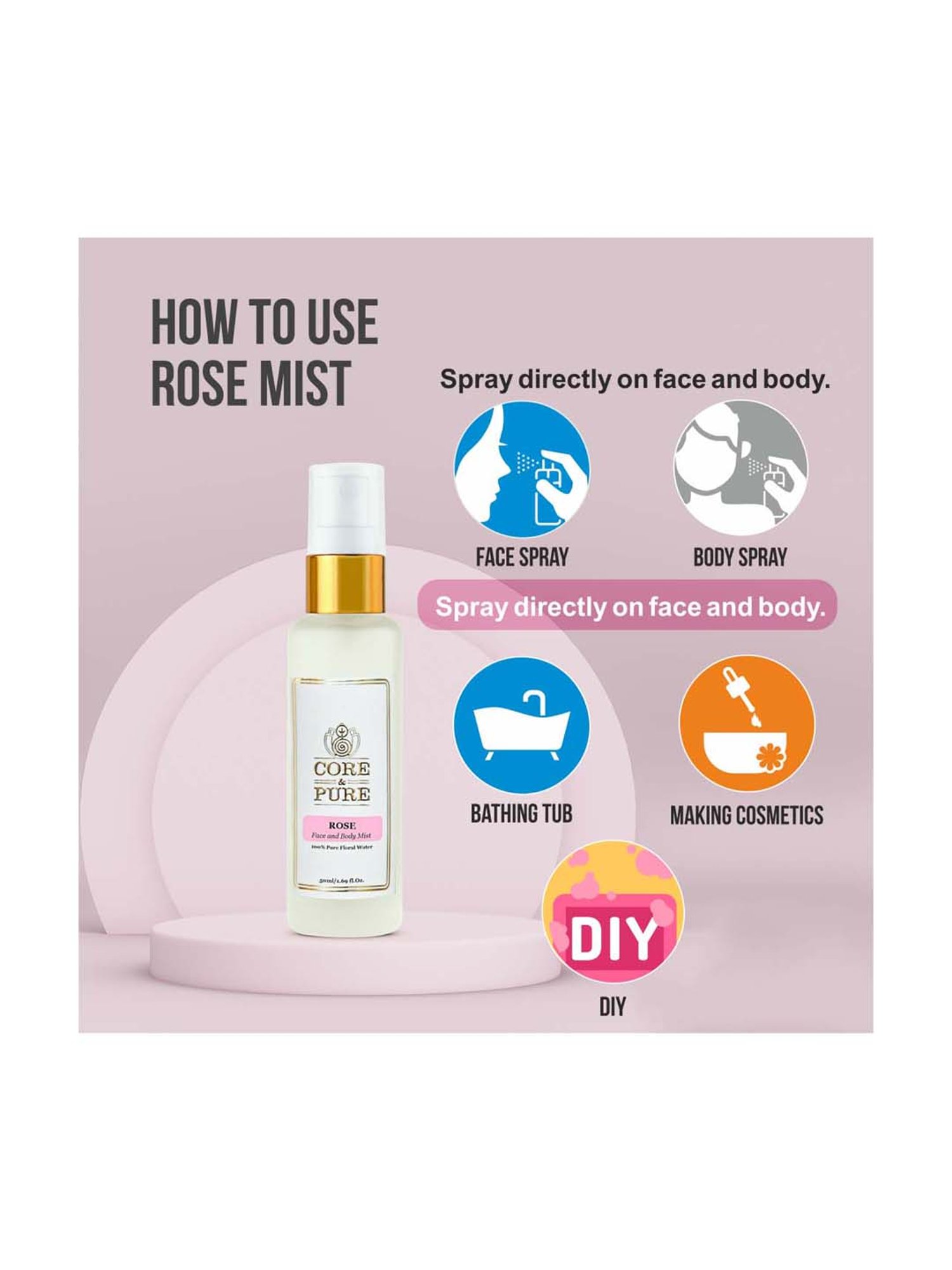 Spray Directly on Face And Body. Add in Your Beauty Products Preparations as Required. For Bathing,Add Some Quantity in Your Bucket. Add Desired Quantity for Any of Your DIY Preparations. |