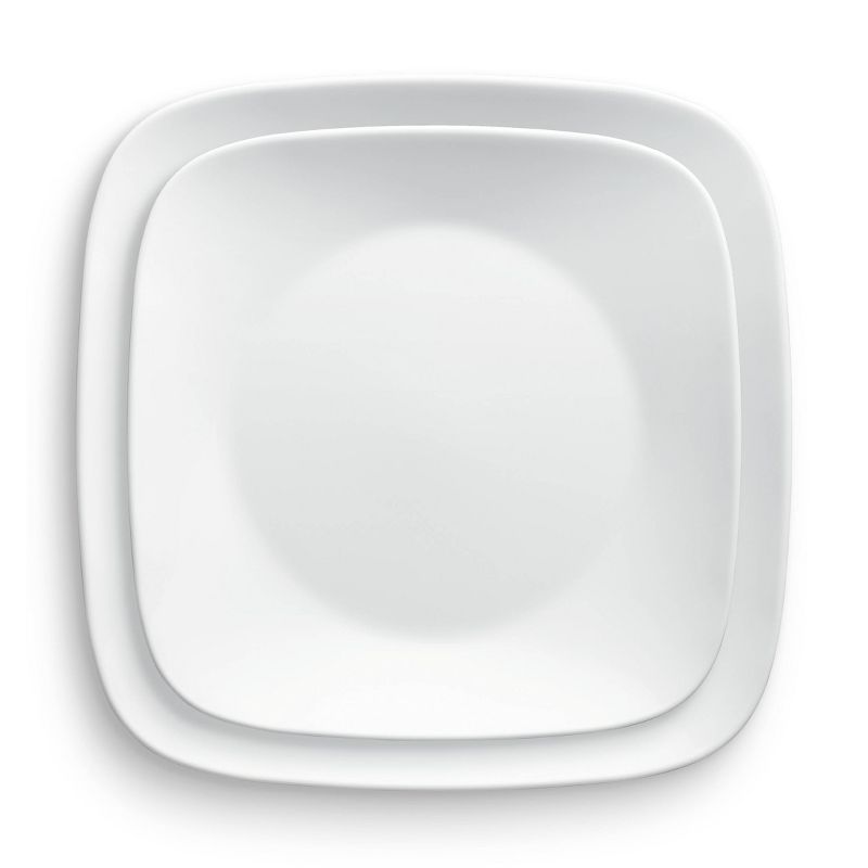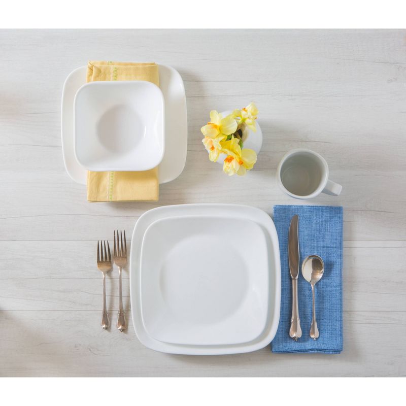 In go-with-everything classic white, this is the dinnerware set that takes you from everyday meals to casual get-together's to special occasions. Layer it with colors and patterns from your other favorite pieces. It lets food take center stage and gives you a blank canvas for seasonal touches. Made from durable Vitrelle material, it is microwave safe and cleans up easily in the dishwasher as well.