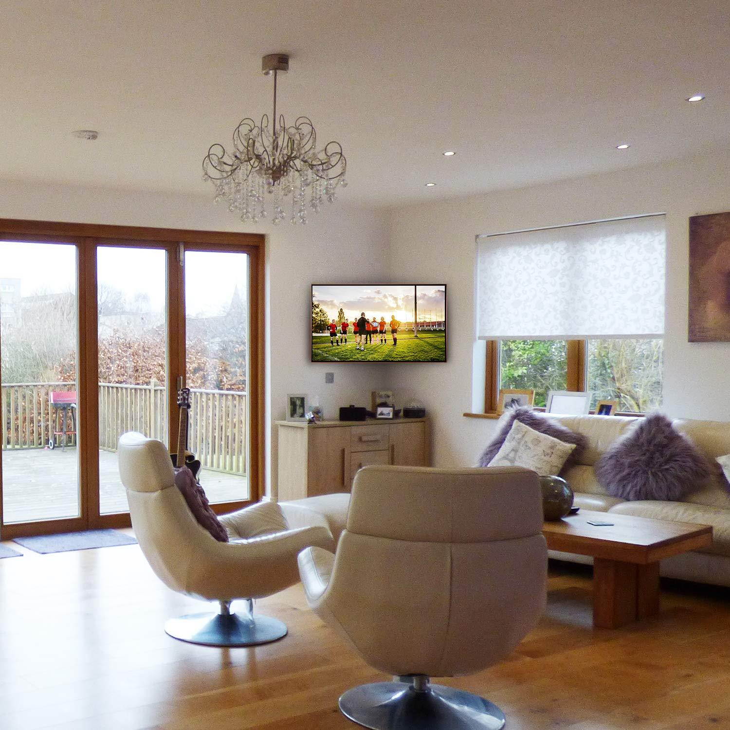 FULLY ADJUSTABLE SWIVEL & TILT FEATURES - This corner TV wall bracket comes with a +5°/-8° tilt, 180° swivel (max. swivel angle depends on TV size) and +/-5° level adjustment. Hang your TV in the corner and you can still enjoy maximum viewing flexibility. Choose the perfect angle to watch TV from anywhere in the room
