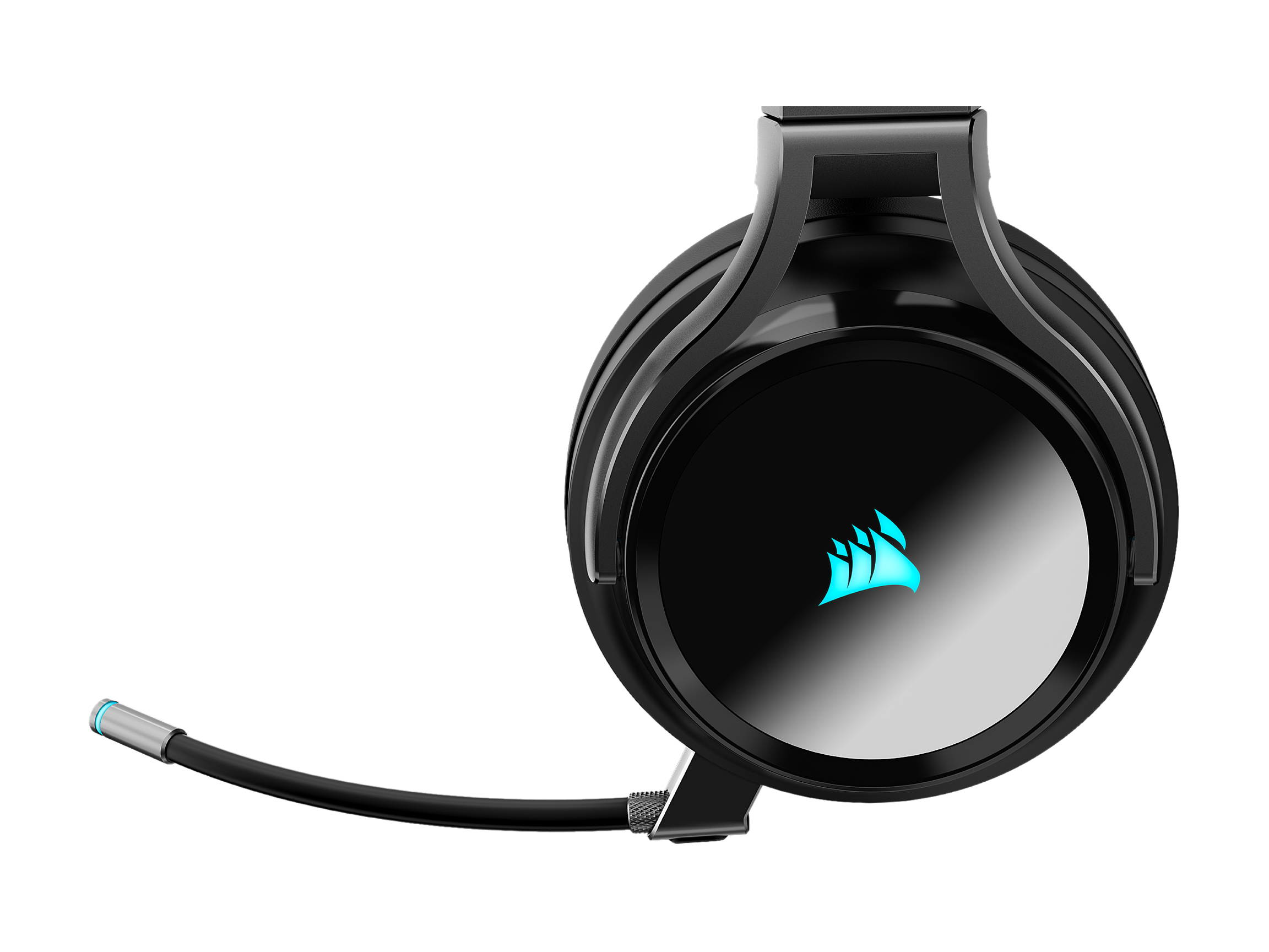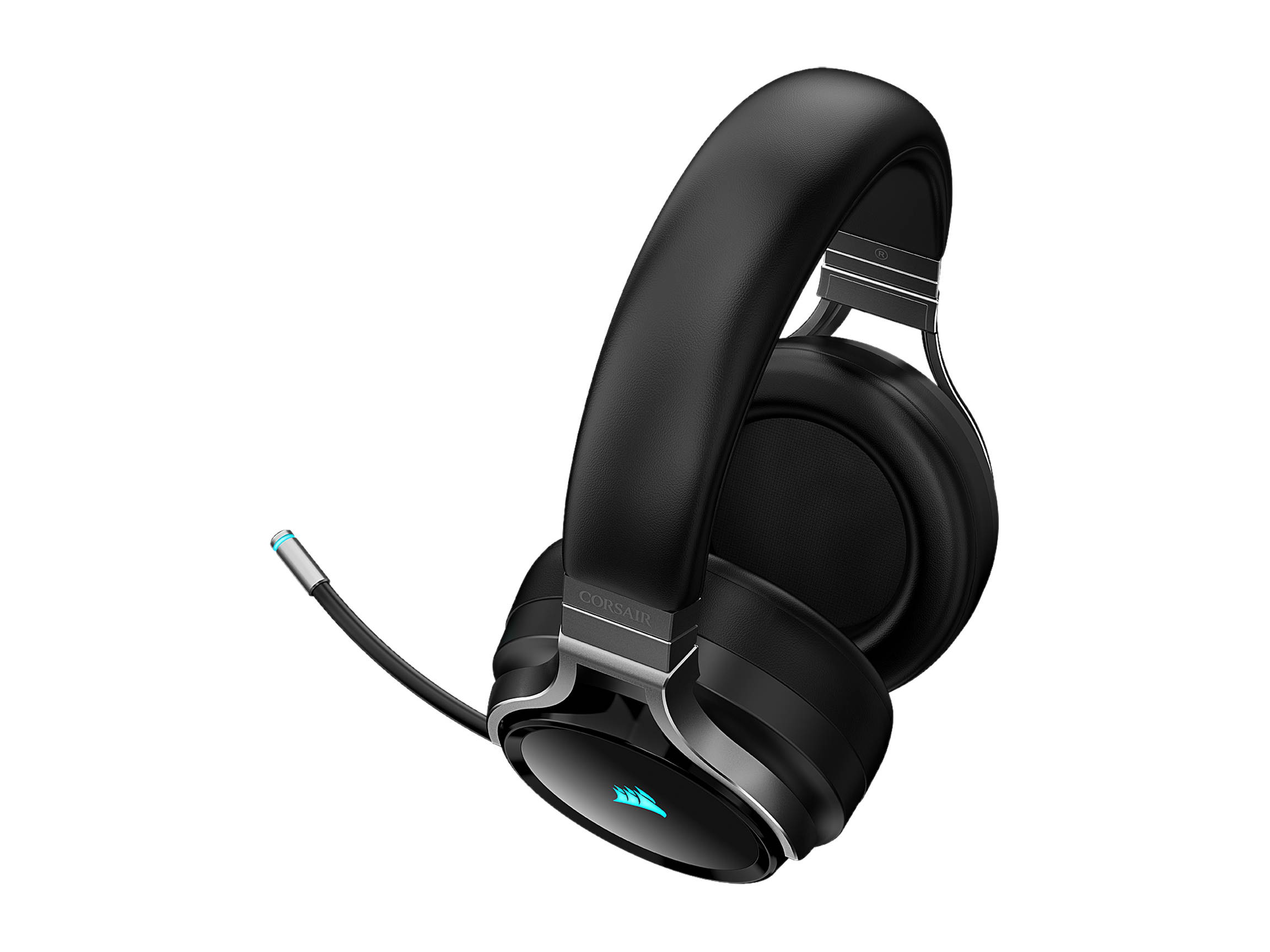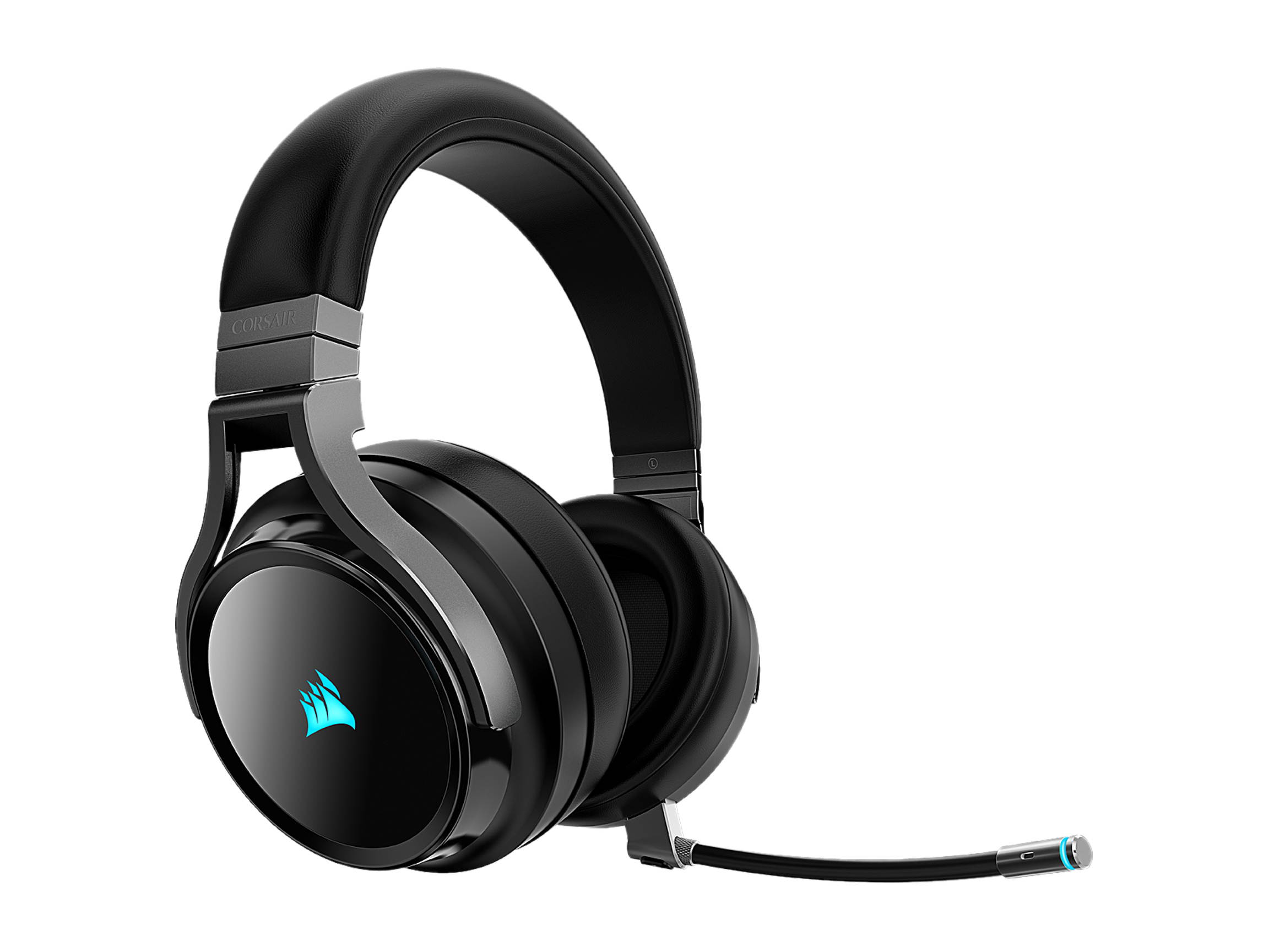 | Features | Uncompromising Sound Quality: A matched pair of precisely tuned 50mm high-density neodymium speaker drivers deliver immersive 7.1 surround sound with a frequency range of 20Hz-40,000Hz - double that of typical gaming headsets. Comfort is King: Premium memory foam earpads that conform to the shape of your head, along with a lightweight headband deliver pillow-soft, long-lasting comfort, enabling you to play for hours on end. Hyper-Fast Gaming-Grade Wireless: High-fidelity, ultra-low latency audio, with an exceptional 60 ft. signal range using SLIPSTREAM CORSAIR WIRELESS TECHNOLOGY. Professional-Grade Detachable Microphone: An omni-directional, high-bandwidth microphone provides exceptional dynamic range and vocal clarity. Premium Lightweight Construction: Built with machined aluminum, ensuring both maximum comfort and longterm durability. Wide Device Compatibility: Connect to virtually any device including PC, Xbox One, PS4, Nintendo Switch, and mobile with wired 3.5mm, USB, or SLIPSTREAM WIRELESS.* * Connection compatibility dependent upon device. 7.1 surround sound only available on PC High-Fidelity 24-bit/96KHz USB Audio: Experience true high-fidelity sound via USB wired connection. All-Day, All-Night Battery Life: Game for up to 20 hours at a time thanks to a custom, high-capacity lithium-ion battery and an accelerometer-based smart-sleep/wake function. Dynamic Dual-Zone RGB Lighting: RGB lighting on each ear cup allows for virtually unlimited color options and customization to match any style. Intelligent Control, Unlimited Possibilities: CORSAIR iCUE software offers a range of pre-tuned audio profiles or custom tuning of your equalizer settings, immersive 7.1 surround sound, sidetone control and RGB lighting synchronization with compatible CORSAIR peripherals, coolers, fans and more. |