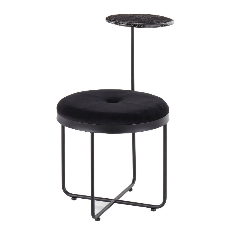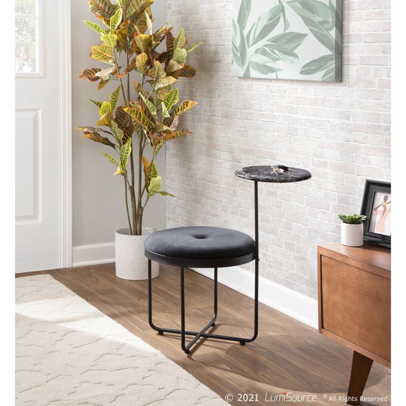 A mix of marble, metal, and velvet create a contemporary look that will fit any room. The Cosmo Ottoman by LumiSource is the perfect size for smaller spaces. With a black marble attached table, black metal base, and velvet seat, the Cosmo Ottoman is versitile and will look great in any room.