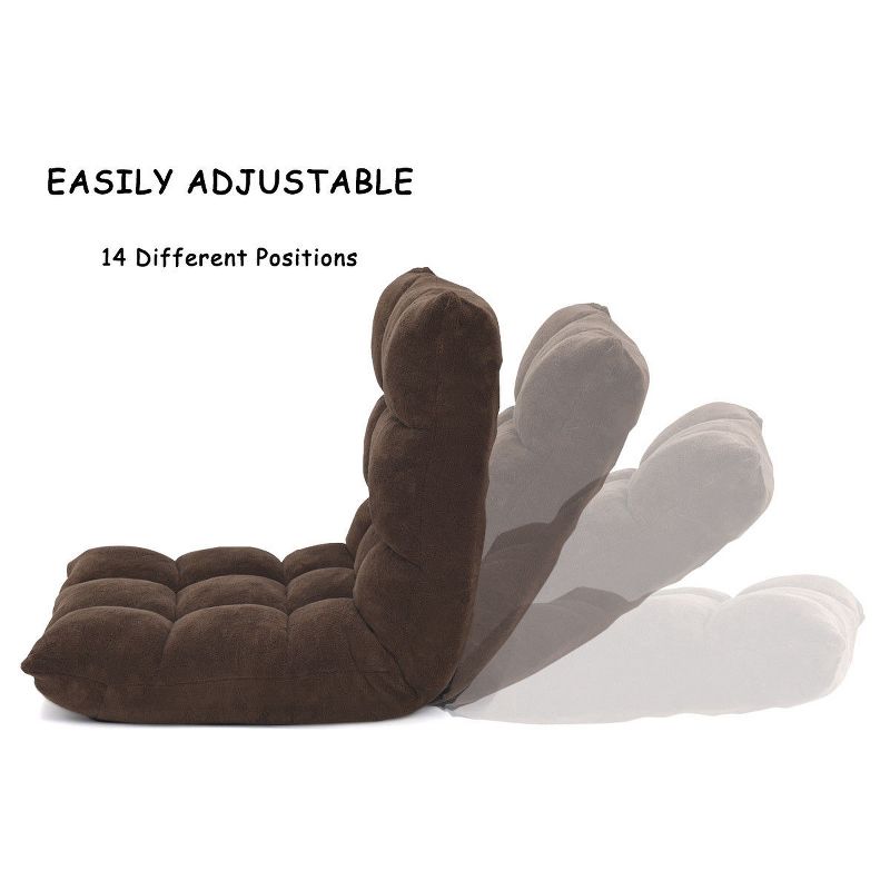 This Is Our latest floor chair, which is perfect for providing great support for reading, meditating, watching TV or playing games. Made with Flannel fabric and stuffed with high-density foam, this chair offers comfort and support for floor seating. Perfect for small spaces, this lightweight, versatile chair can be easily moved around and placed on any clean and dry surface Specification: Color:Coffee. Material:Coral velvet+ alloy-steel pipe+ sponge. Flat size:41.5''L x 22.5''W x 6''H.