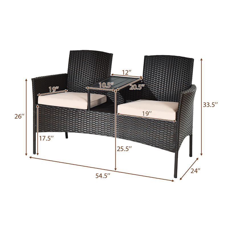 • Easy Assembly & Simple Maintains: This outdoor wicker furniture is simple to put together with clear instruction and necessary hardware. Overall size: 54.5"x24.0"x33.5" (L x W x H), Weight Capacity: 355 lbs (each seat)Weight of conversation set: 31.0 lbs, weight capacity of table: 65 lbs.