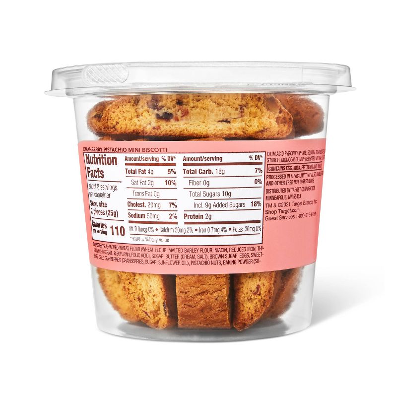 Give your morning kickstart or afternoon pick-me-up the perfect accompaniment with Cranberry Pistachio Mini Biscotti from Favorite Day™. Perfectly crumbly biscotti are packed with dried cranberries and crunchy pistachios for a delightful blend of textures and sweet-and-salty flavor combo. Big flavor is packed into each little biscotti for a treat you'll love, whether you enjoy dunking a couple in coffee or just munching on them on their own. And with approximately eight servings in the package, you have plenty to share at a breakfast or brunch gathering or to give yourself a little treat multiple mornings.