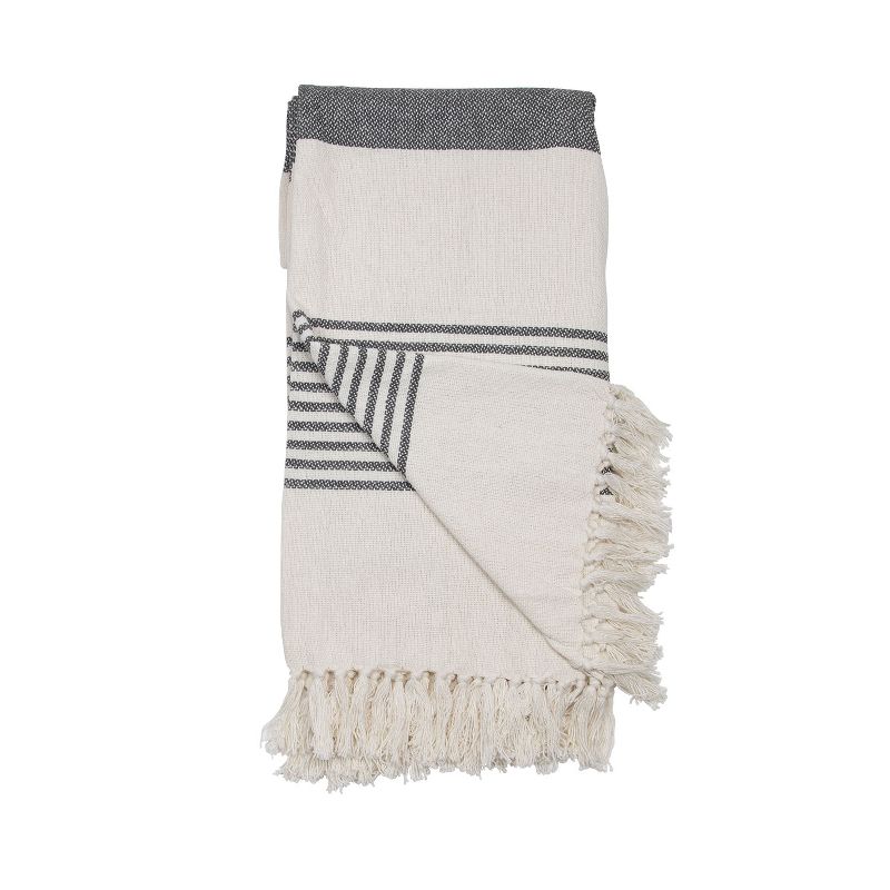 • Details: Hand woven by artisans in India using techniques passed down through generations. This cream and gray colored throw has hand tied fringe details that will bring beautiful texture to any room. A great accent piece for your couch, chair or bed.