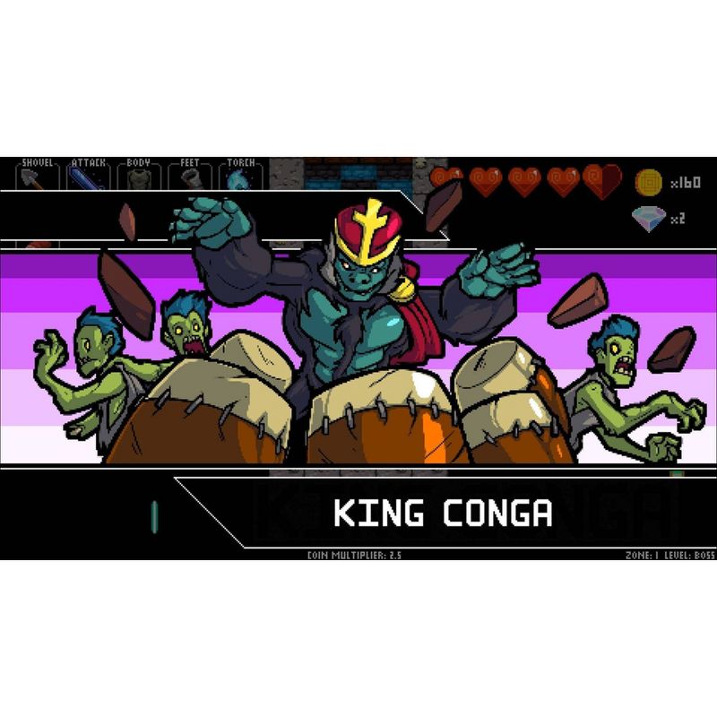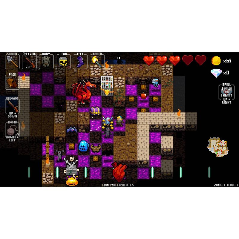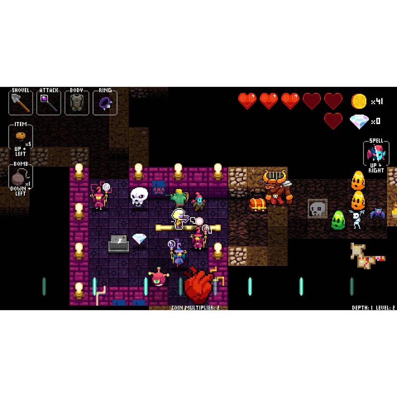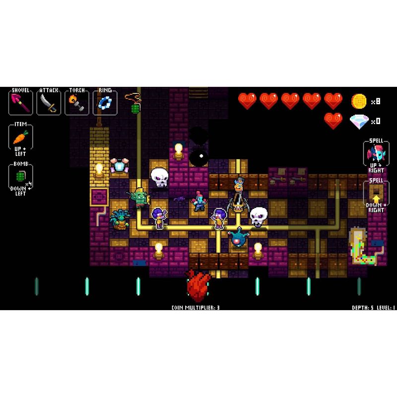 Players must move on the beat to navigate randomly generated dungeons while battling dancing skeletons, zombies, dragons, and more, while grooving to the game's award winning Danny Baranowsky soundtrack! You can even team up with a friend in local co-op mode!
