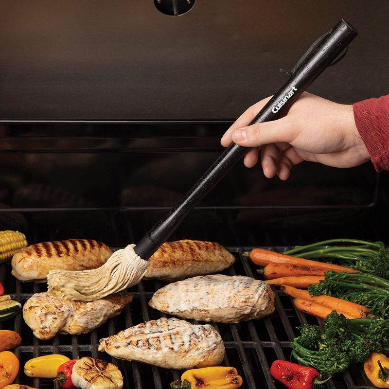 - MOP-STYLE BRUSH HEAD: The mop-style brush head is preferred by pit masters and is great at evenly spreading sauces over your food.