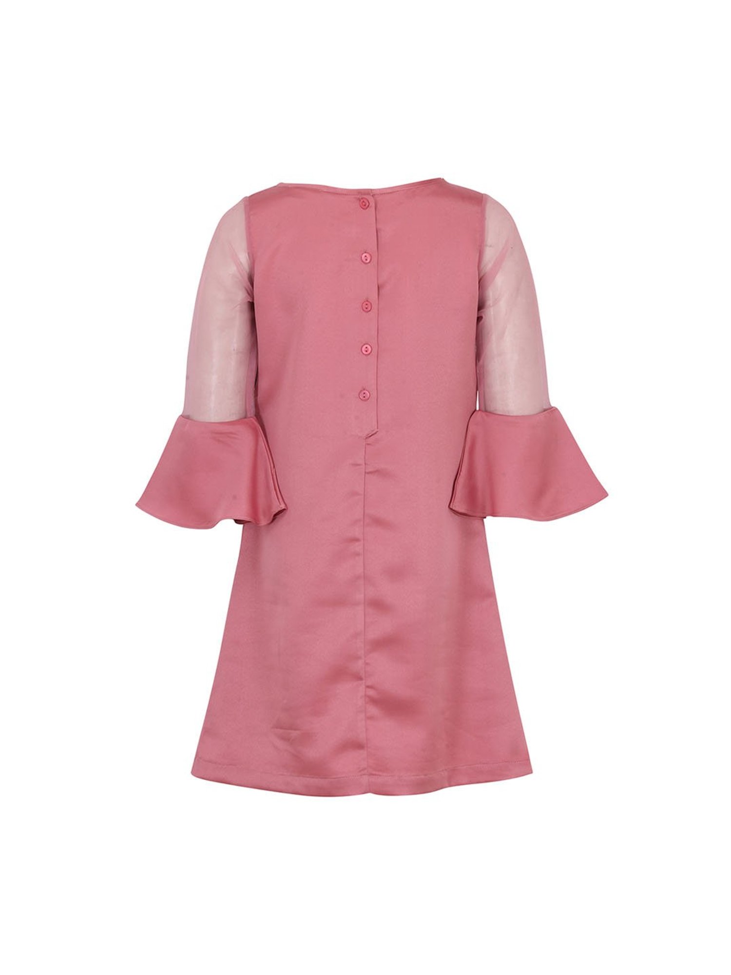 Get this sassy little pink dress with bag from Cutecumber Kids for your angel and she is sure to be in the limelight. Wearing this round neck with three quarter sleeves dress with bag is a delight, courtesy of its soft satin fabric and embellished pattern.