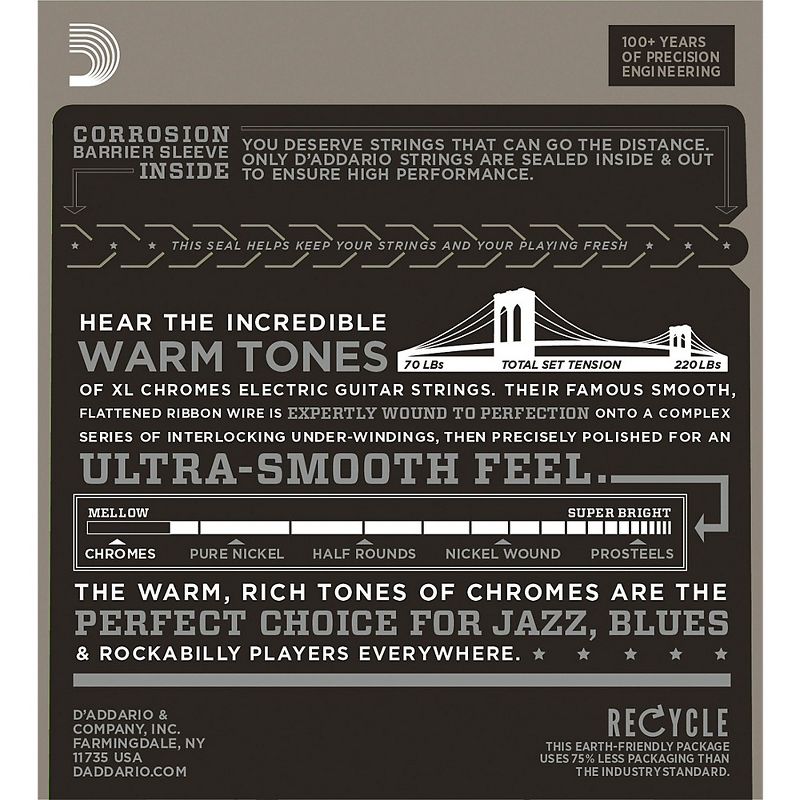 D'Addario Chromes Flatwound electric guitar strings are famed for their smooth feel and warm, mellow tone. The strings are wound and then polished to produce an incredibly smooth surface. Gauges: 12-16-24-32-42-52