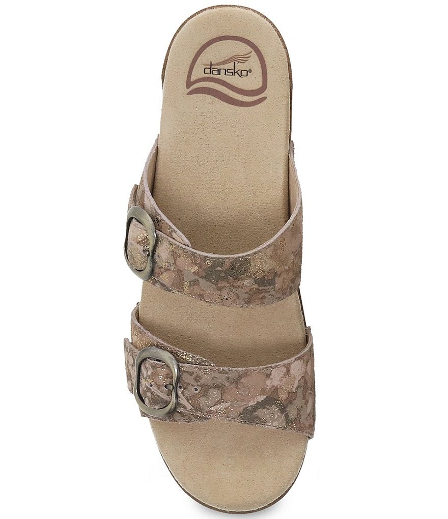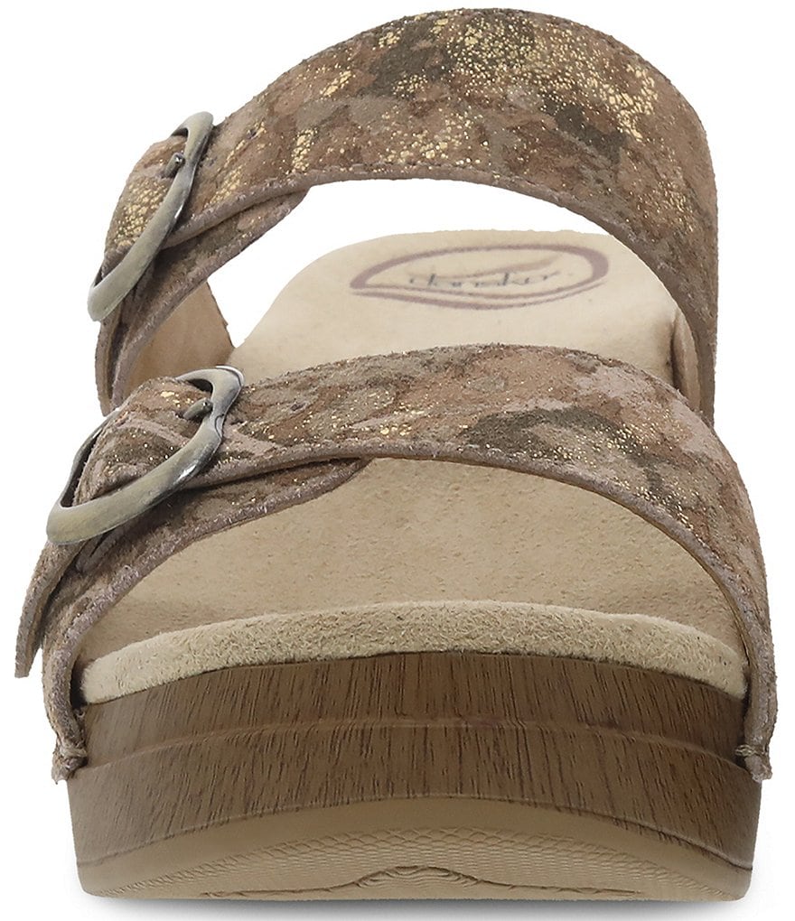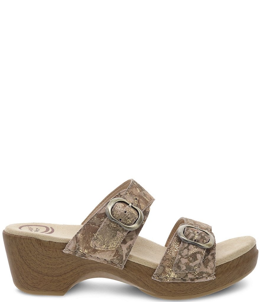 From Dansko, the Sophie Metallic Leather Slide Sandals feature: