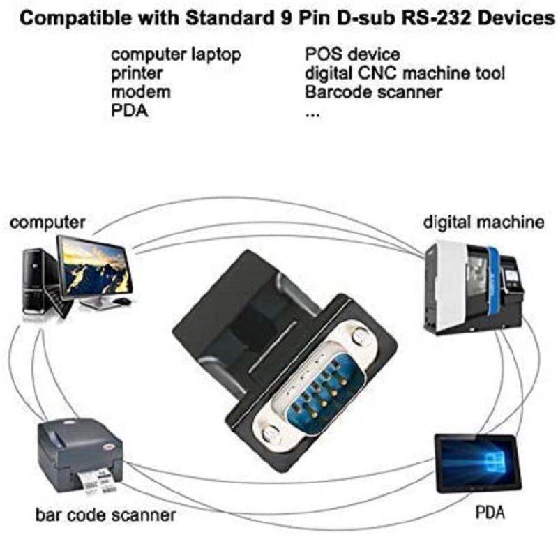 Connector B: RJ45 8 Pin Female Data cabling transmission signal up to 20M Compatible with Standard 9 Pin D-sub RS-232 Devices e. g. computer laptop, printer, modem, router, PDA, POS device, digital CNC machine tool, Barcode scanner, etc.